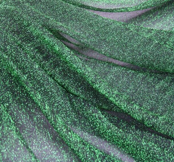 1 Yard 58/60" Wide Green Glitter Fabric on Black Stretch Knit Lightweight Costume Material