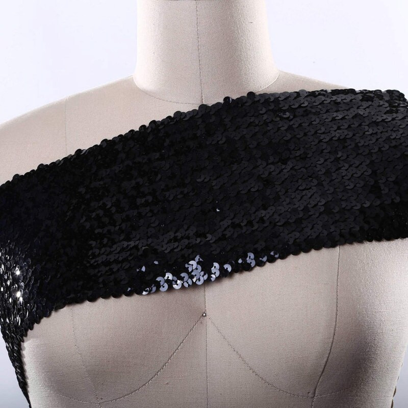 1 Yard 6" Black Stretch Sequin Ribbon Trim