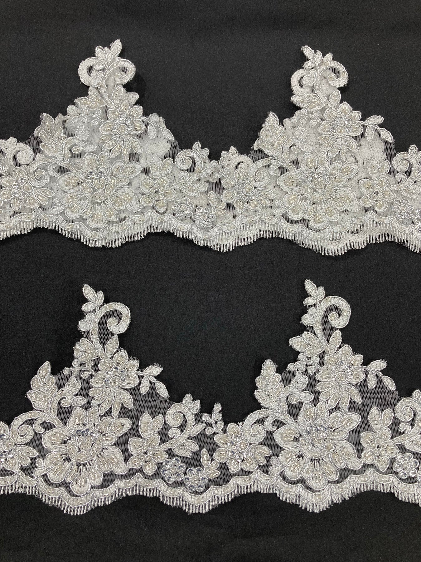 1 Yard 6" Wide Beaded & Corded Floral Lace Trimming Embroidered on 100% Polyester Net Mesh