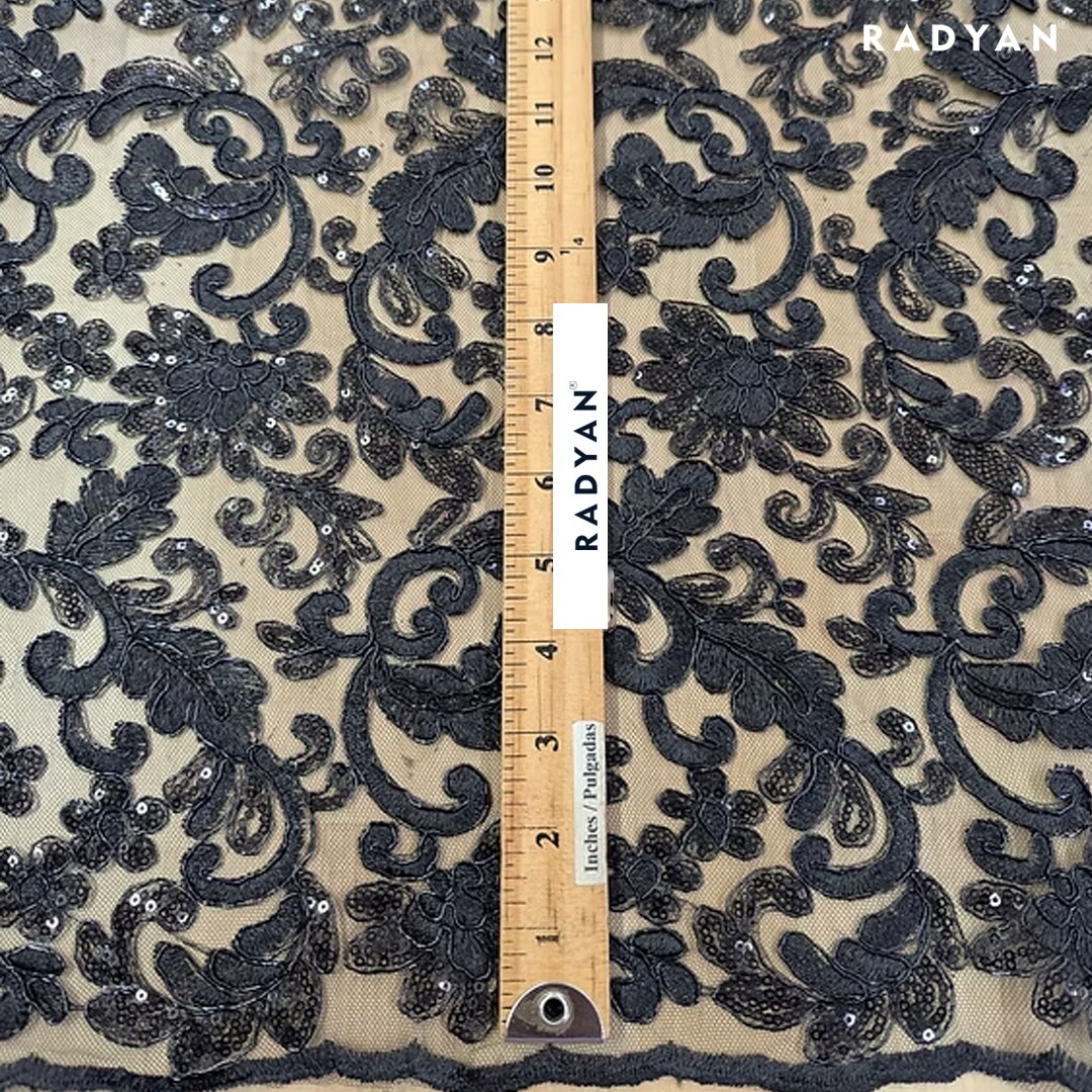 1 Yard All Over Flowers with Sequins Corded Lace 100% Polyester Fabric for Apparel and Crafts 50 Inch Width