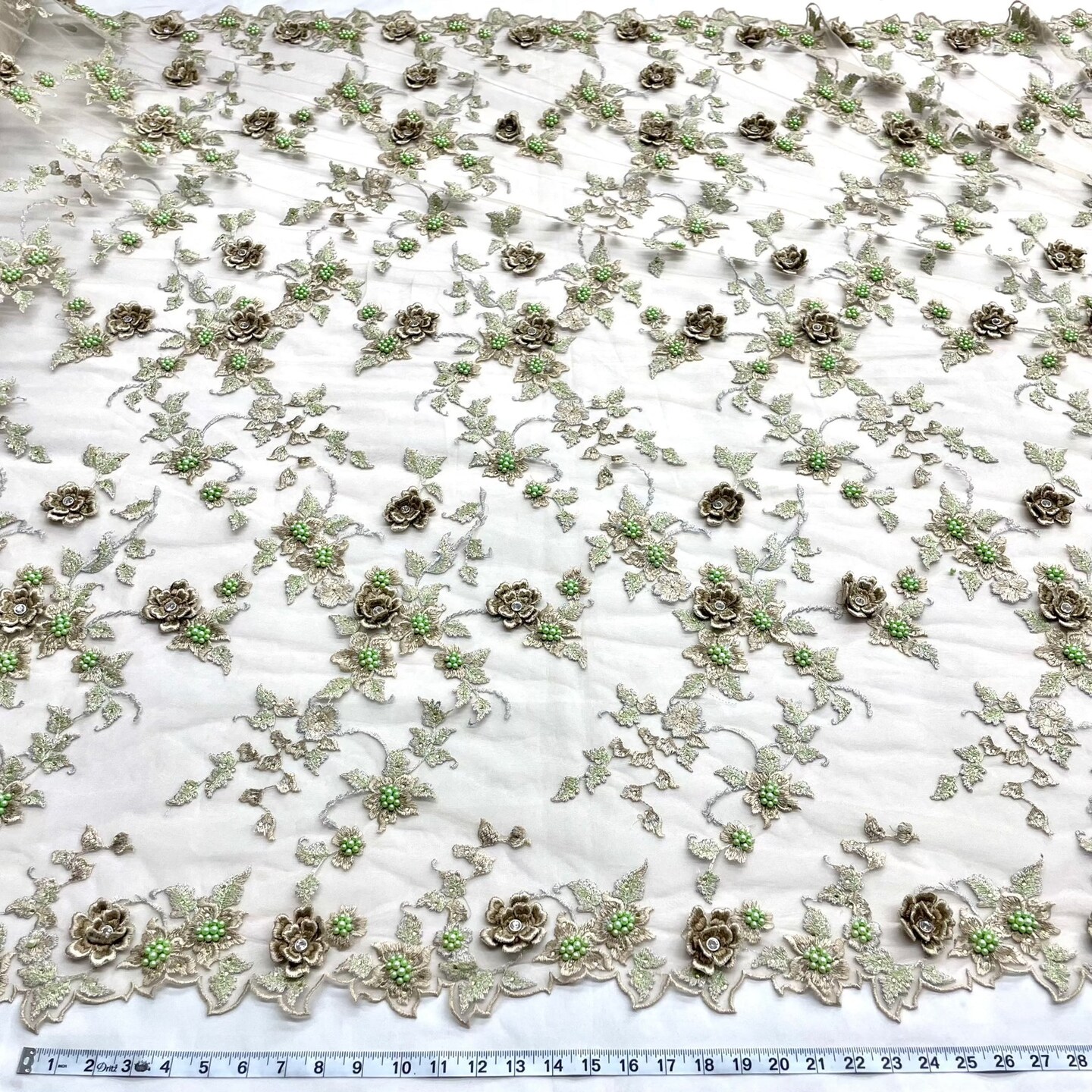 1 Yard Aqua Beaded 3D Floral Lace Fabric Embroidered on Polyester Net Mesh 54 inch Width