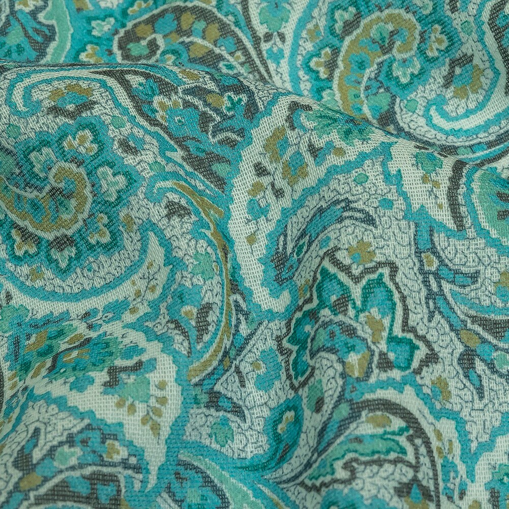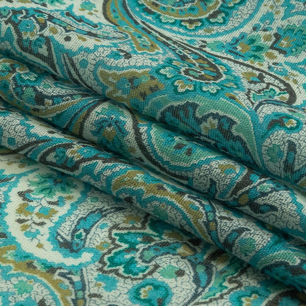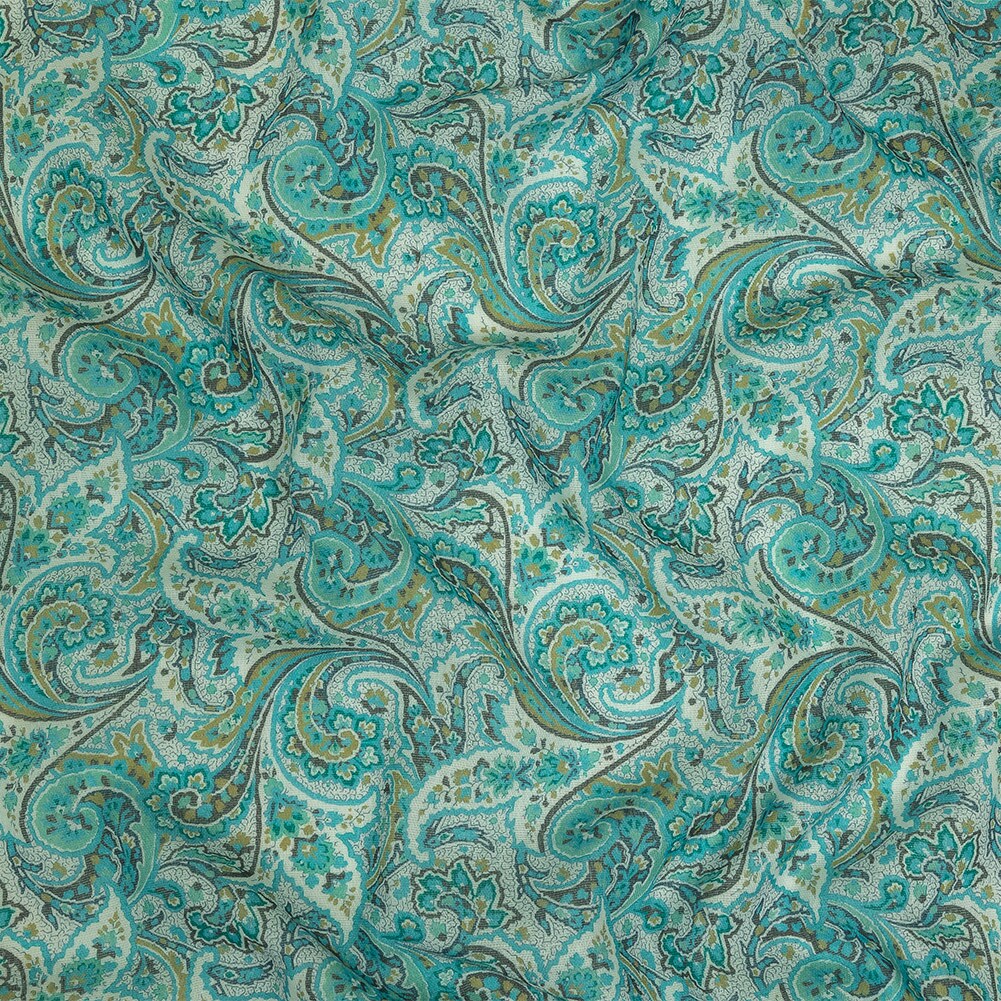 1 Yard Aqua Jacobean Paisley Cotton Gauze Fabric 55 inch Width