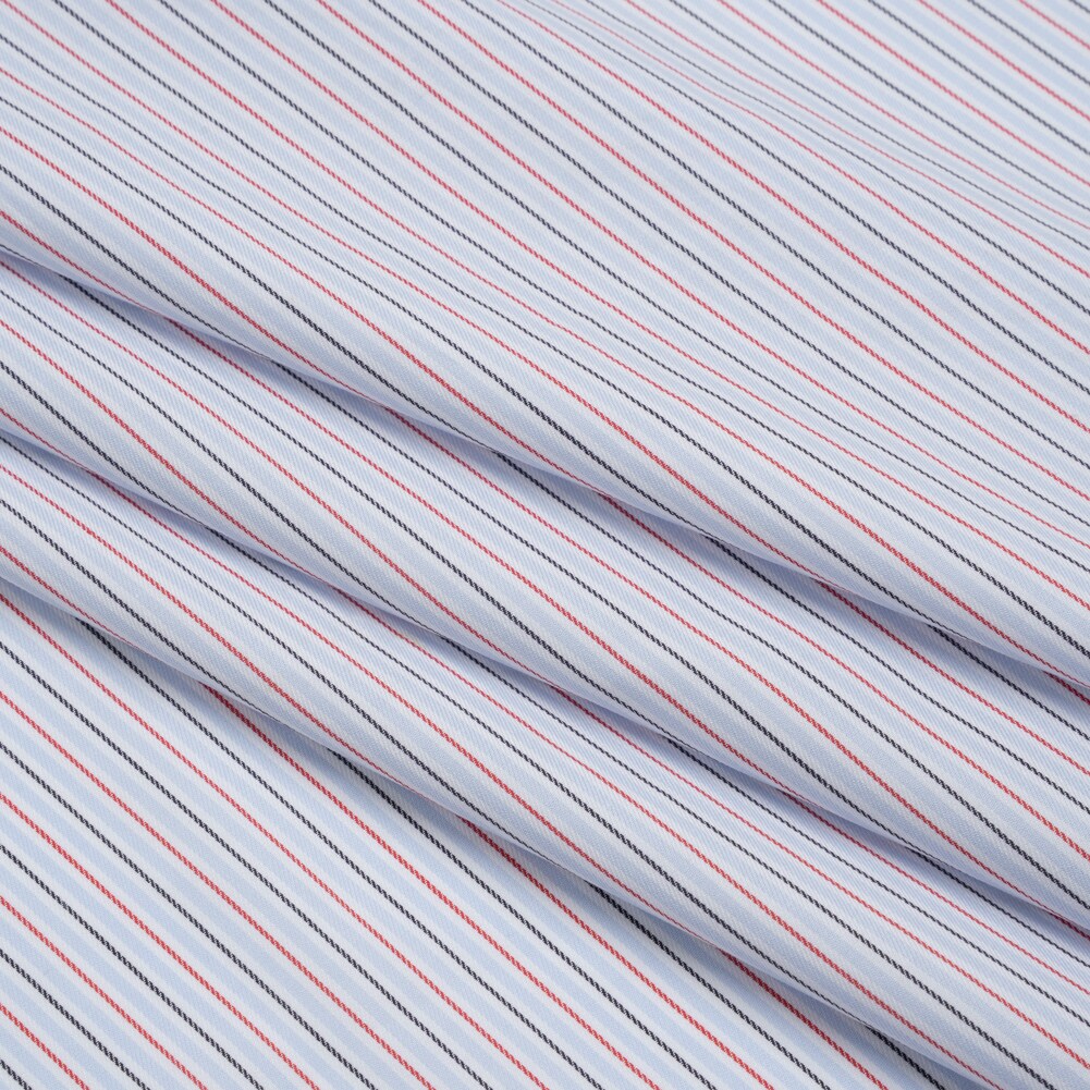 1 Yard Baby Blue Red and Black Stripes Cotton Twill Shirting 56 inch Width