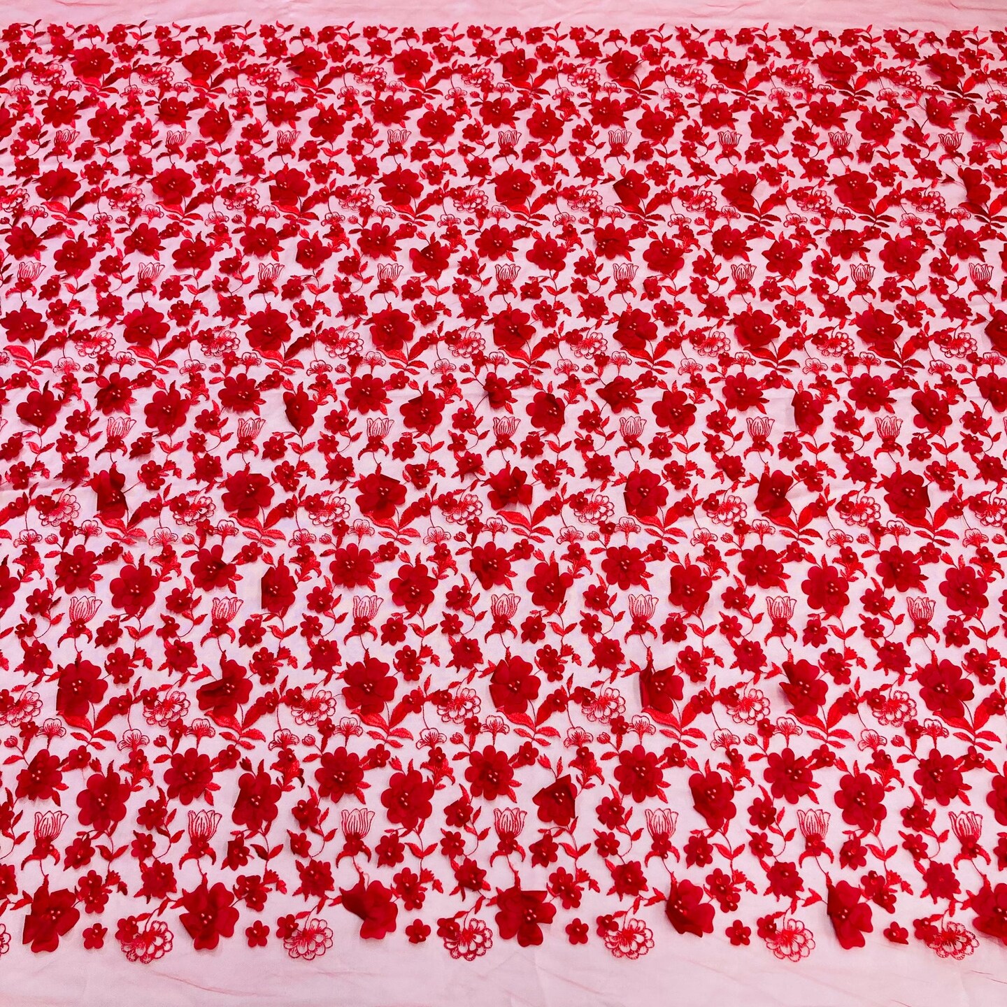1 Yard Beaded 3D Floral Lace Fabric Embroidered Couture Mesh Dress 49" Width