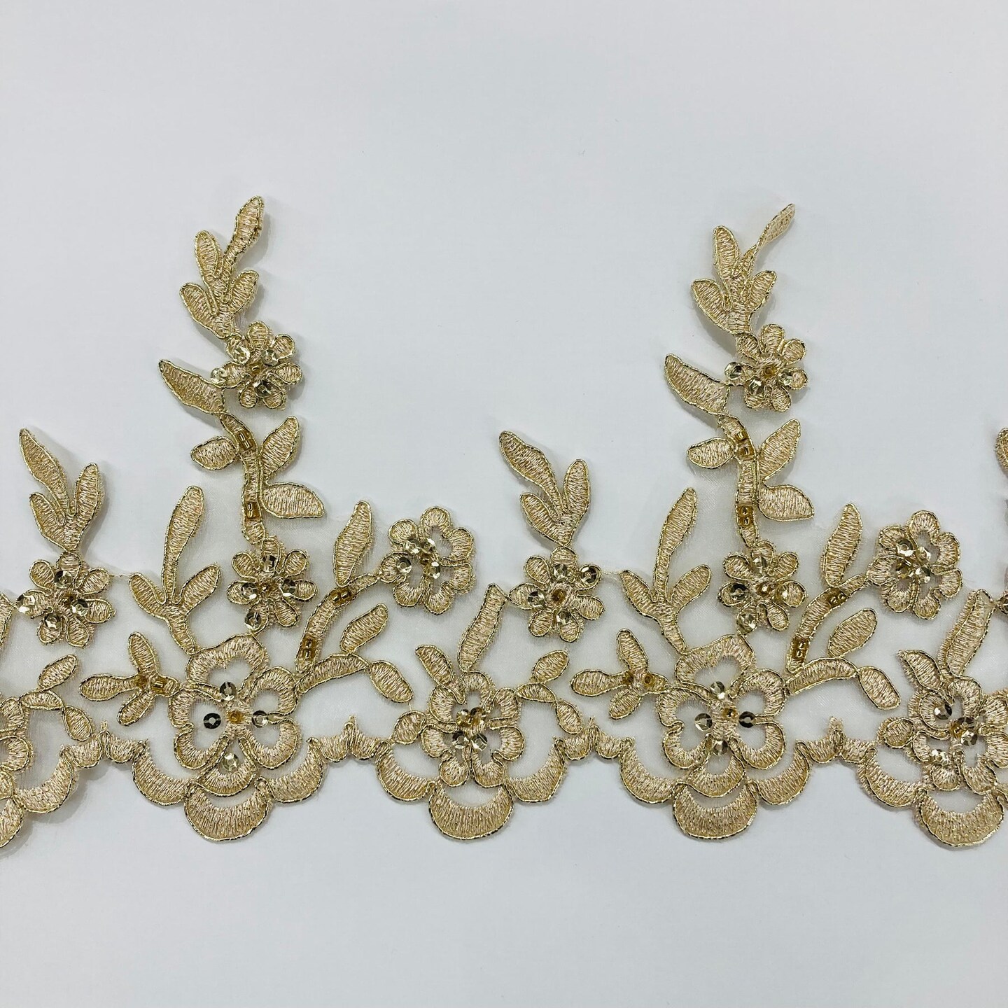 1 Yard Beaded & Corded Embroidered Lace Trim 5.5" Wide 100% Polyester Mesh Net for Bridal & Special Occasion