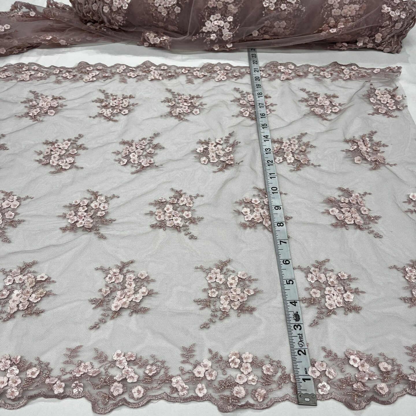 1 Yard Beaded Double Sided 3D Floral Lace Trimming 100% Polyester Net Mesh 21" Wide