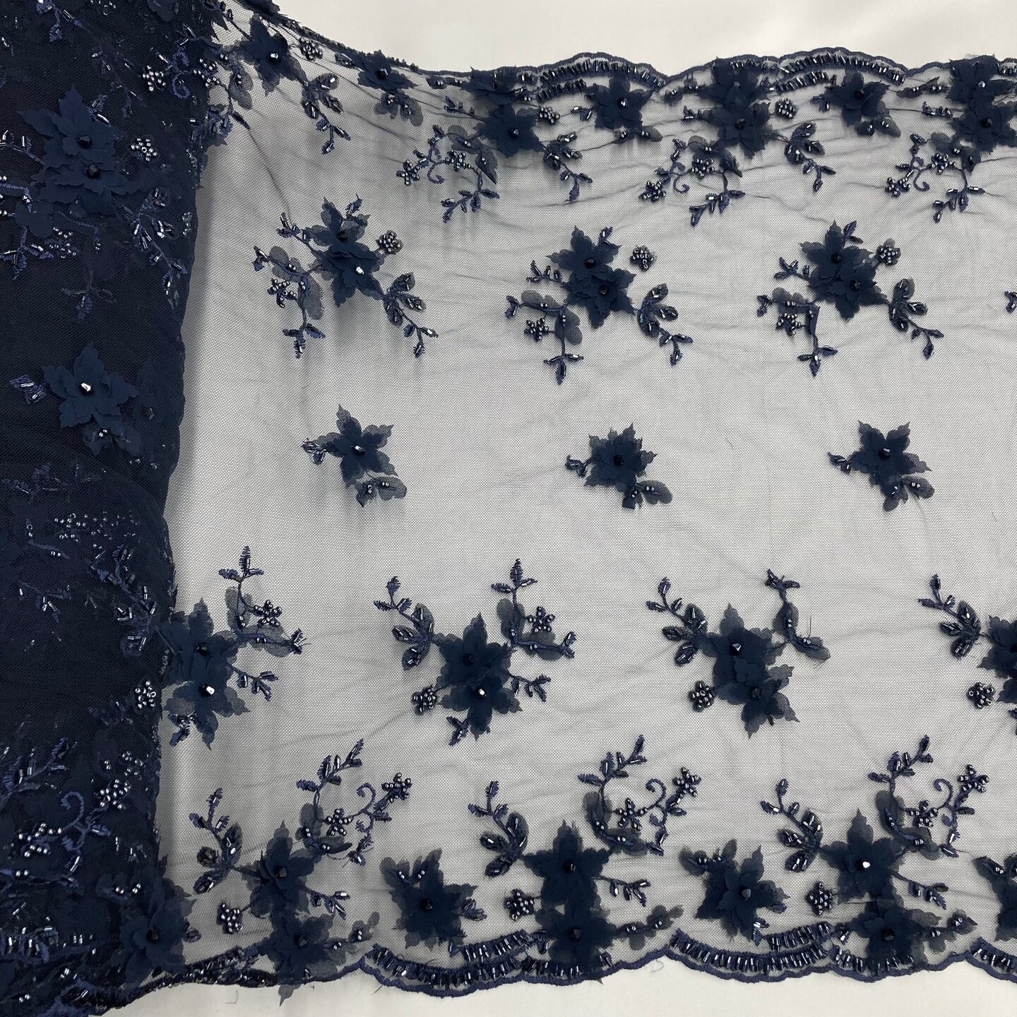 1 Yard Beaded Double Sided 3D Floral Lace Trimming 100% Polyester Net Mesh 21" Wide