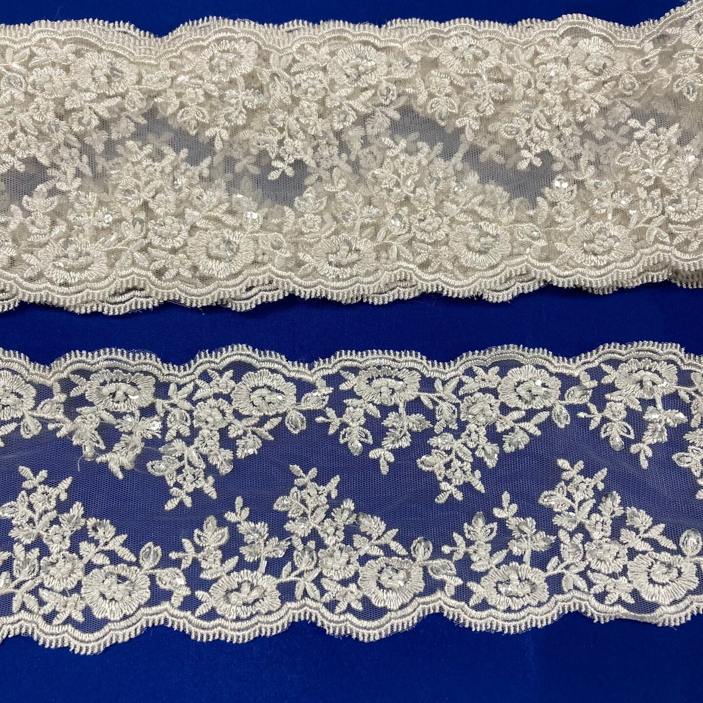 1 Yard Beaded Double Sided Lace Trimming Embroidered on 100% Polyester Net Mesh 5″ Wide