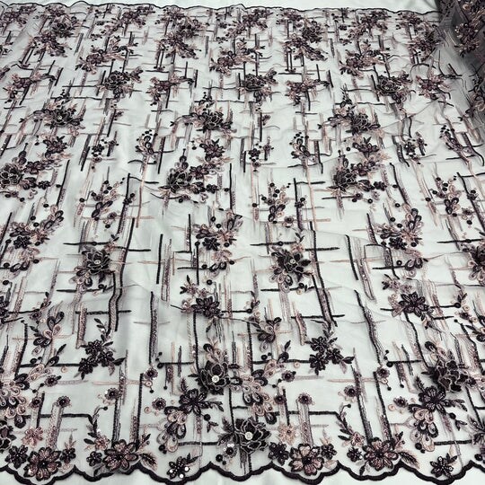 1 Yard Beaded Rhinestone 3D Floral Lace Fabric Embroidered 100 Percent Polyester Net Mesh 50 inch Width