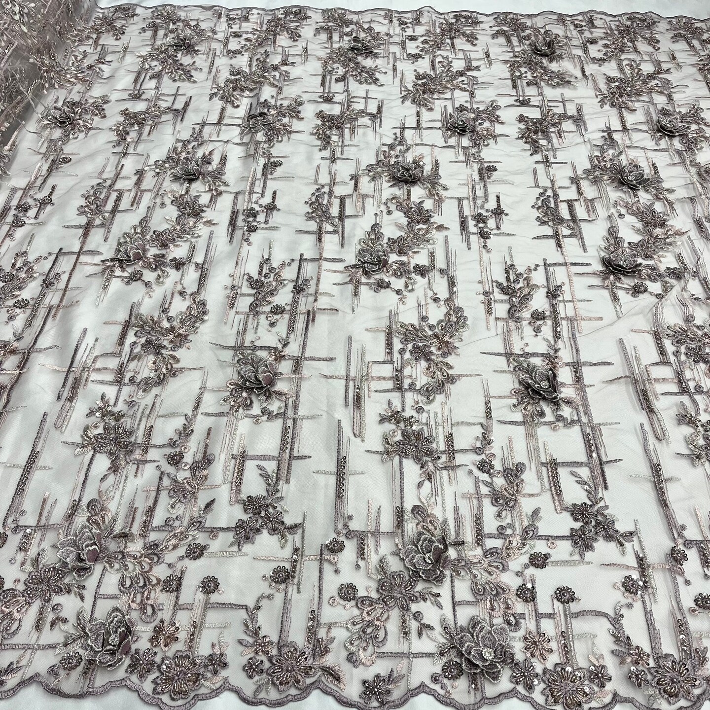 1 Yard Beaded Rhinestone 3D Floral Lace Fabric for Wedding Gowns and Dance Costumes 50" Width