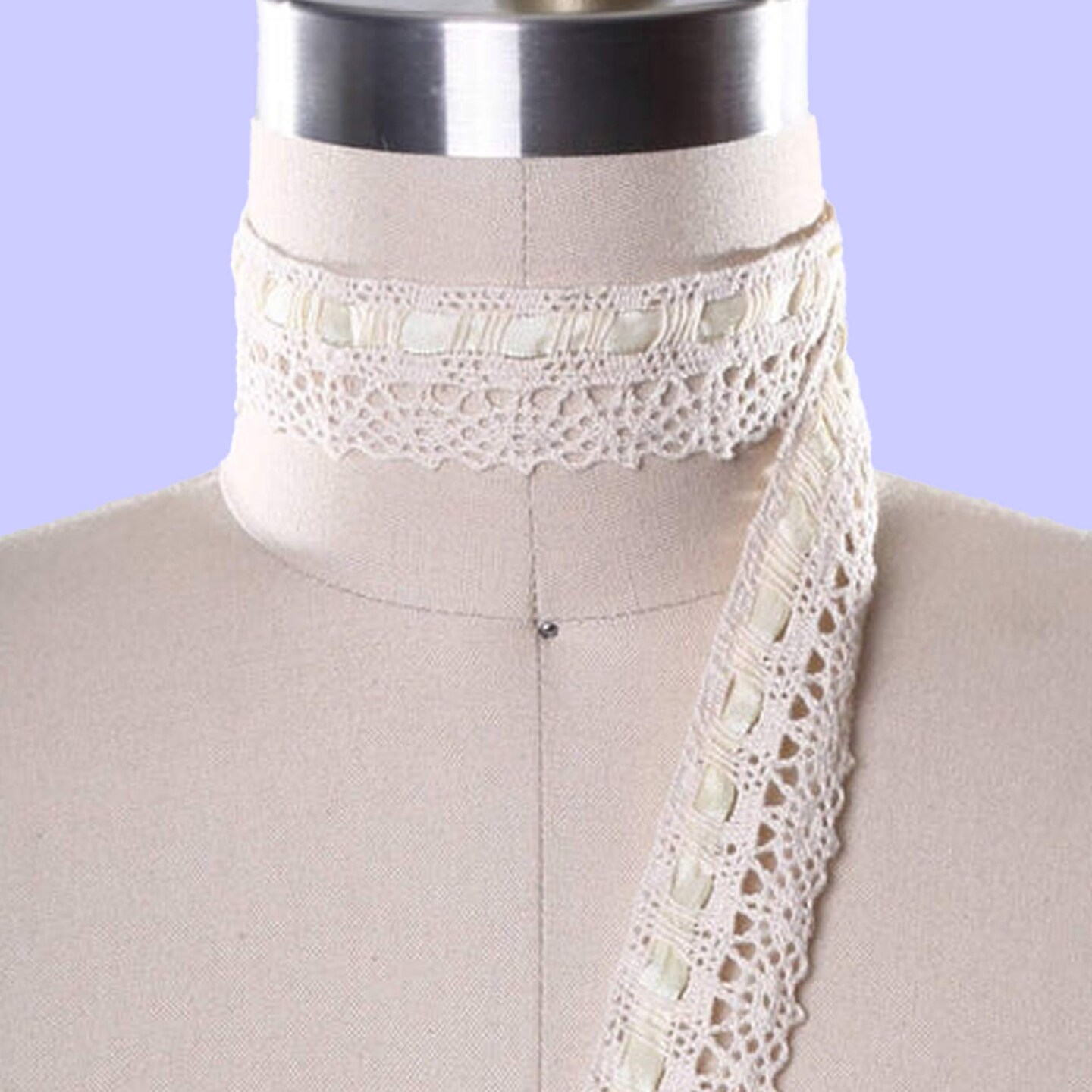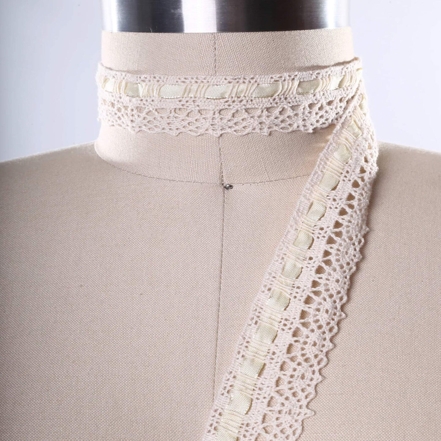 1 Yard Beige 1.25" Cotton Cluny Lace Trim with Eyelets & Removable Ribbon Crochet Style