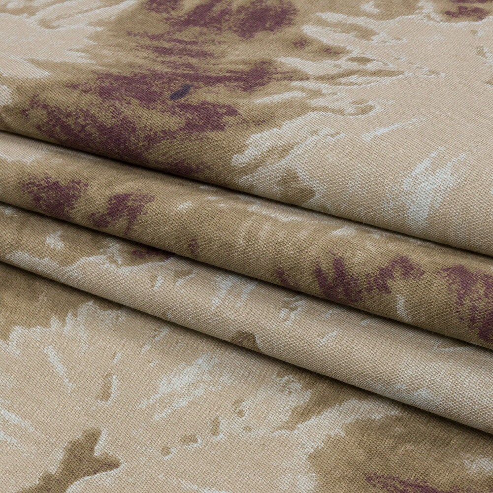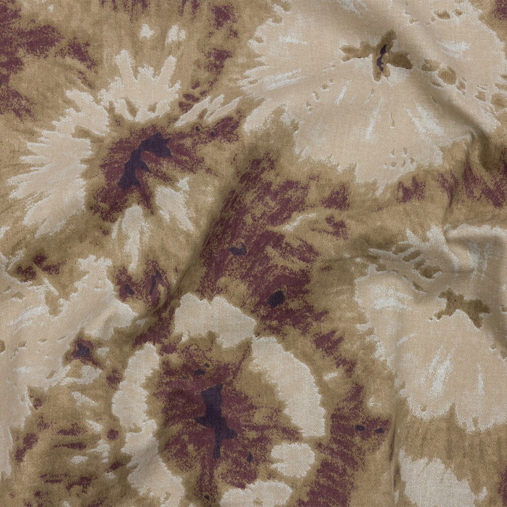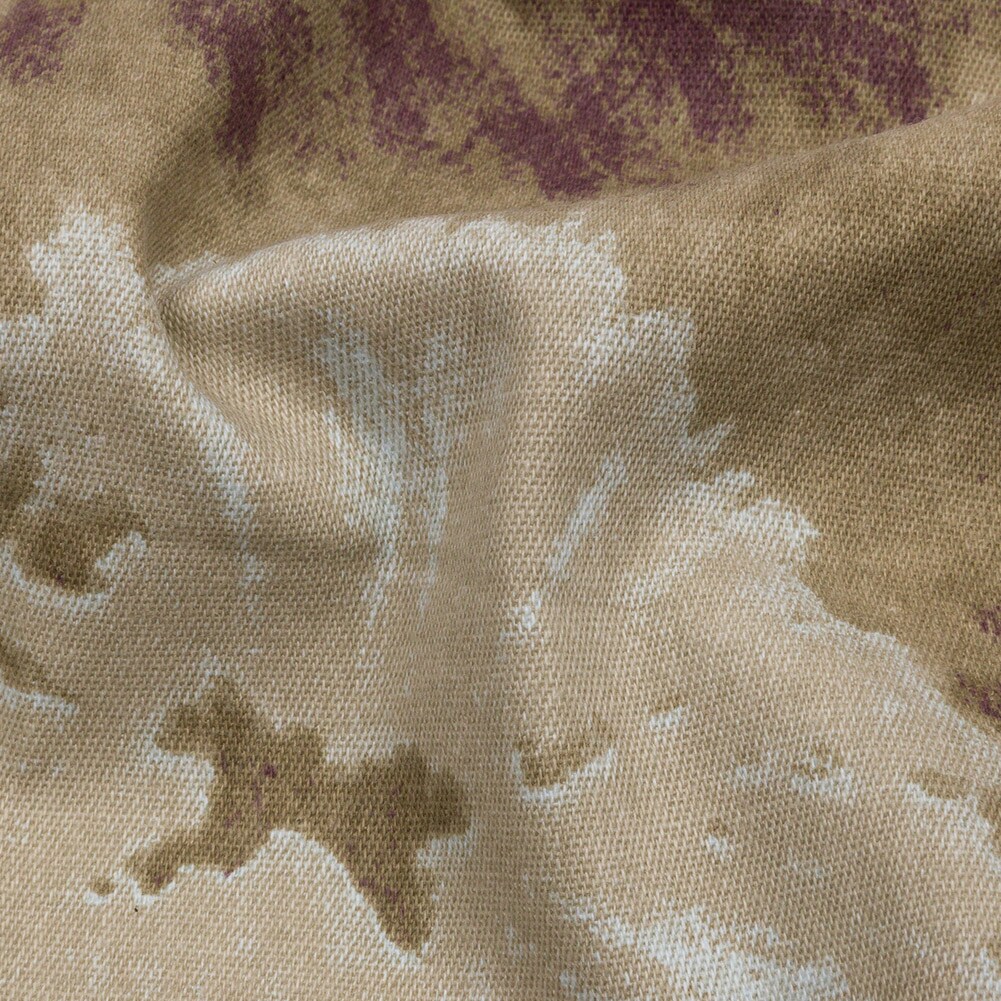 1 Yard Beige Taupe Burgundy Tie Dye Stretch Cotton Canvas Fabric