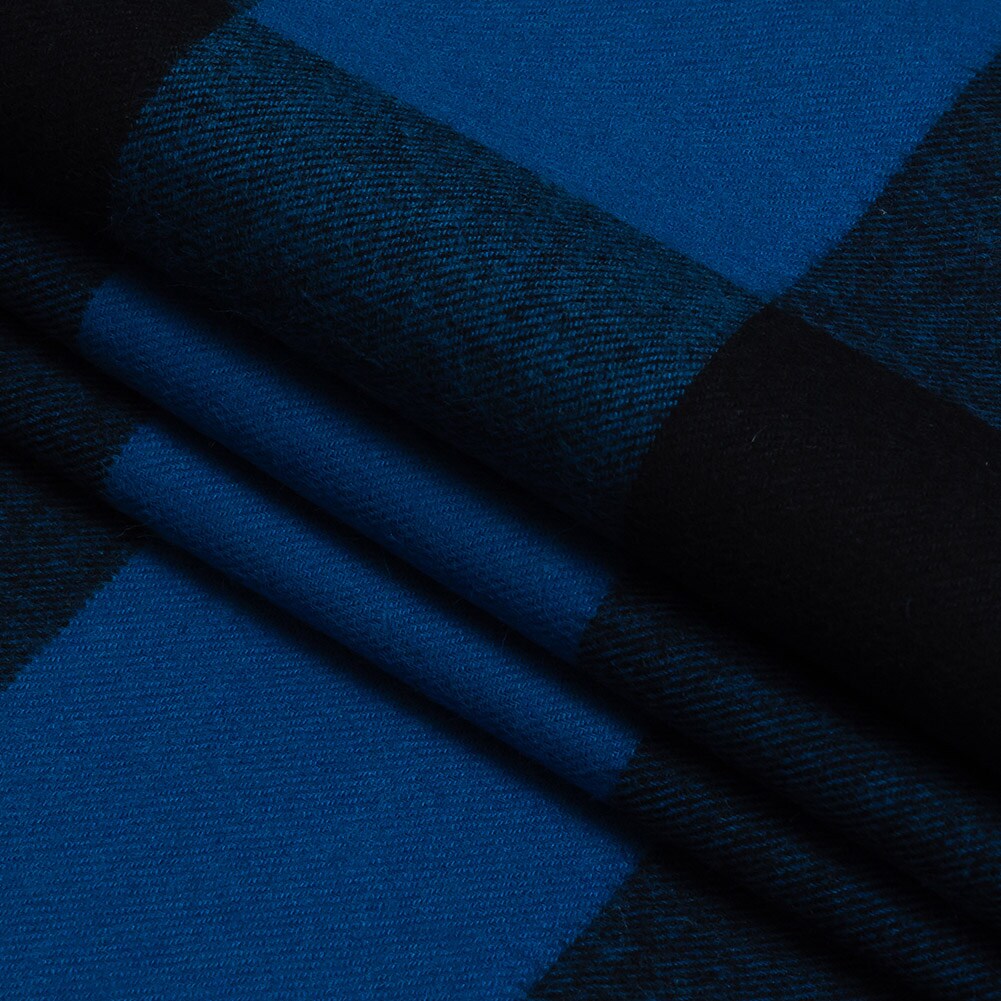 1 Yard Black and Blue Buffalo Check Cotton Flannel Fabric