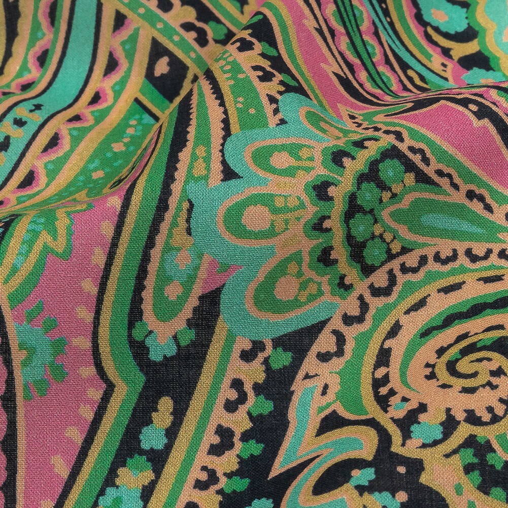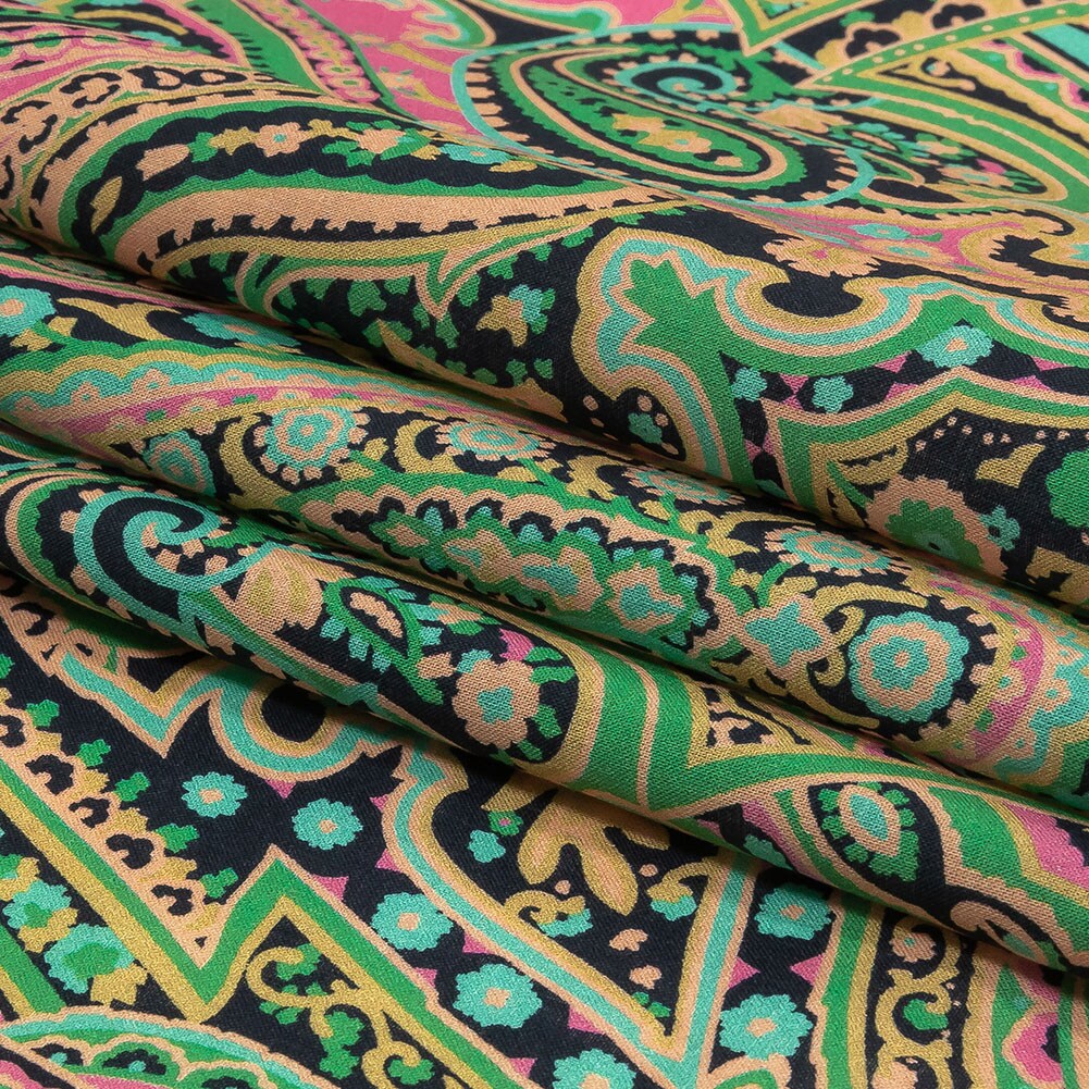 1 Yard Black and Green Paisley Cotton Voile Hippy Shake Print Lightweight Fabric