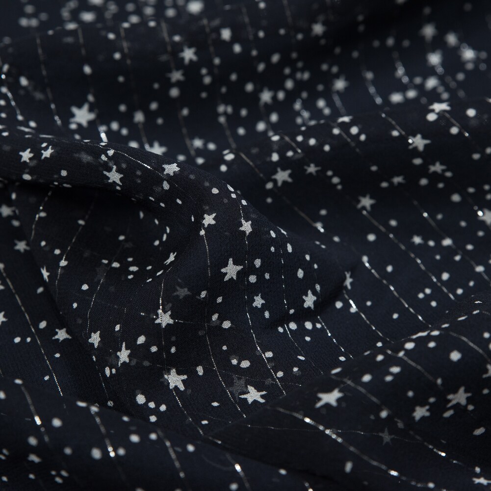 1 Yard Black and White Star Filled Silk Chiffon Evening Dress Fabric 46 Inch Width
