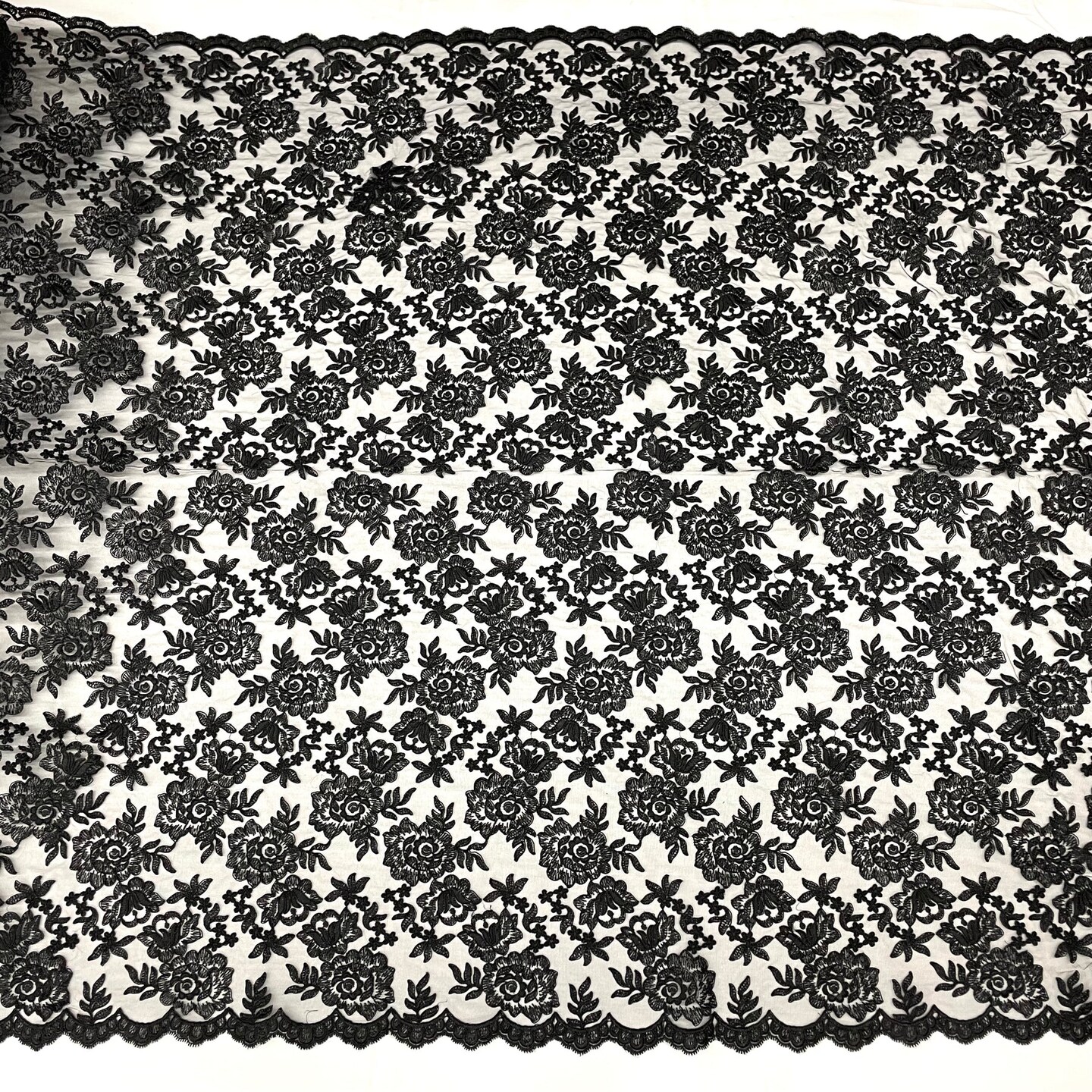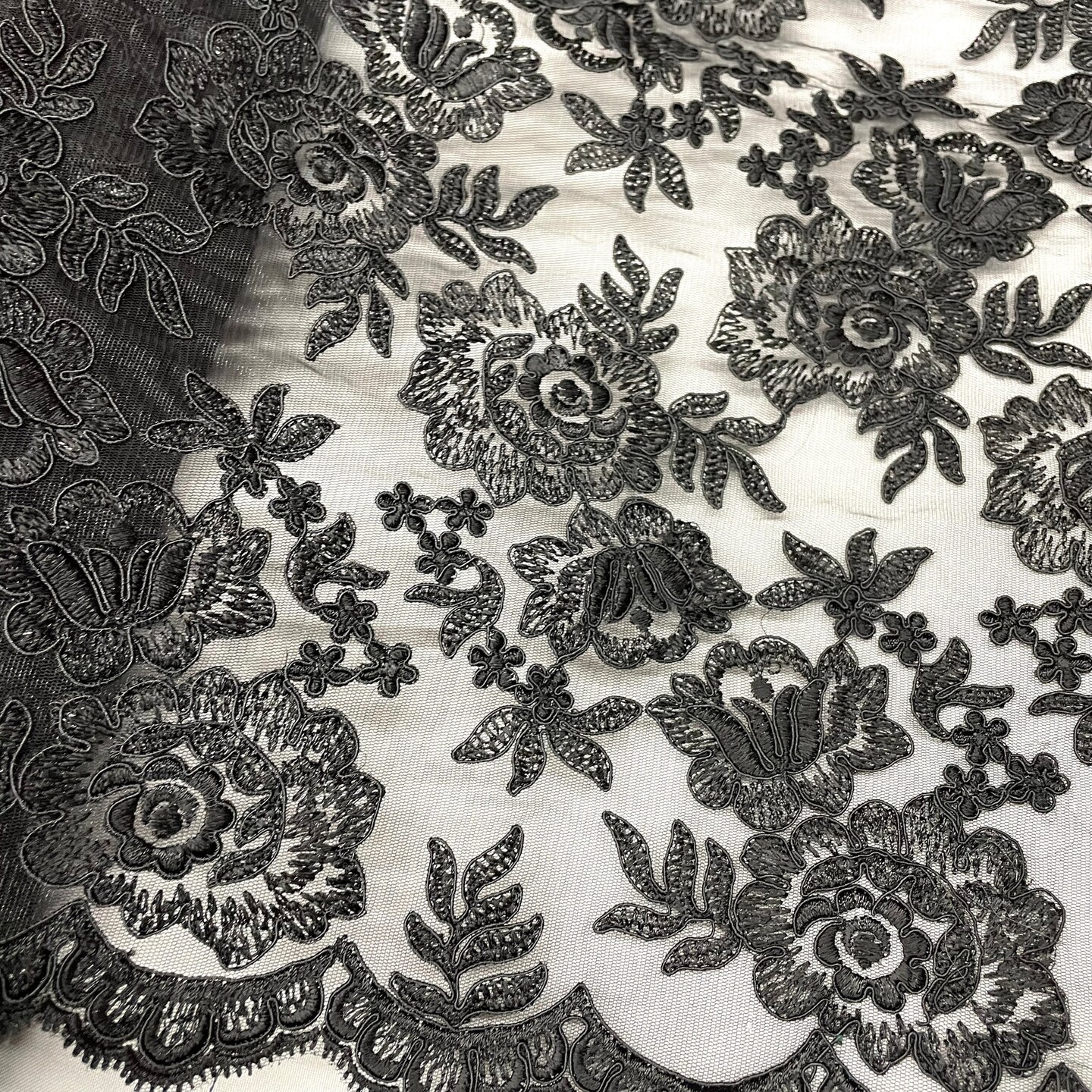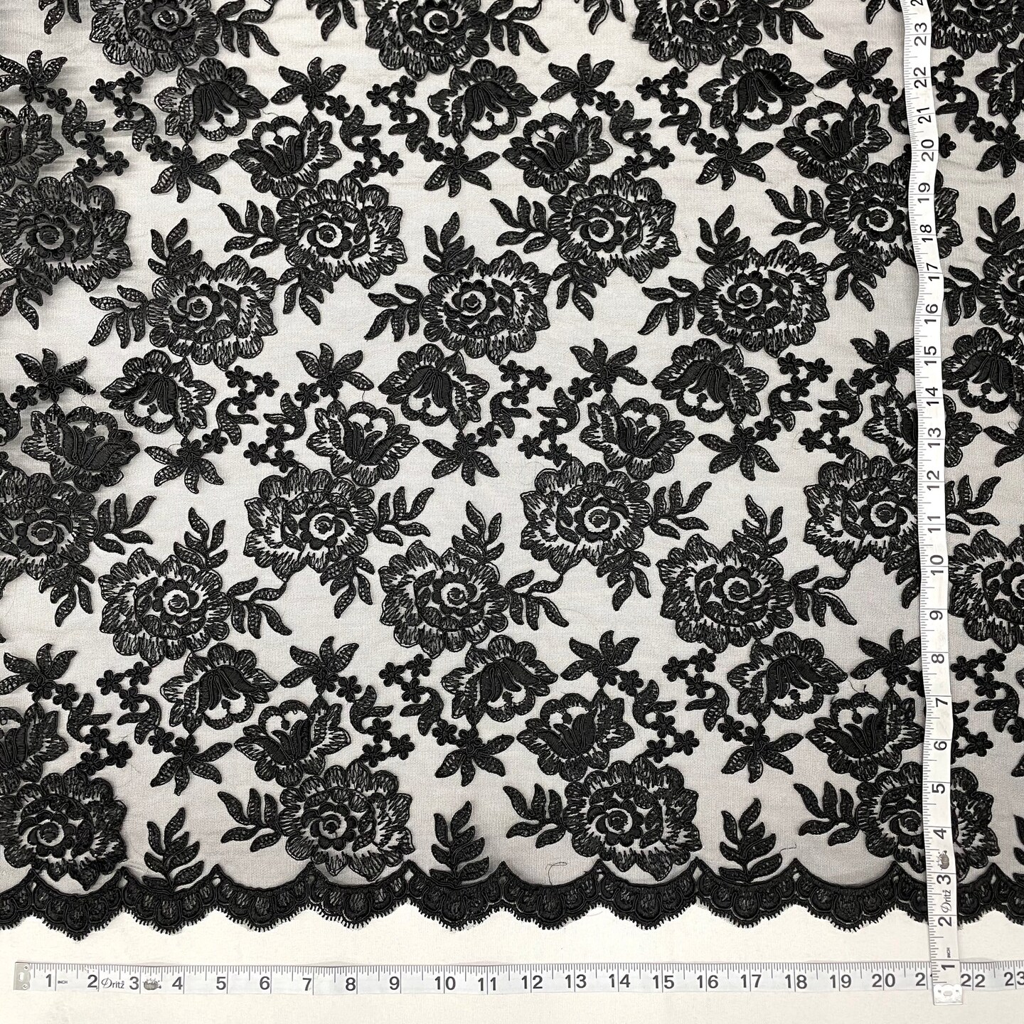 1 Yard Black Corded Bridal Lace Fabric Embroidered Elegant Net Mesh Couture Dress 51" Width