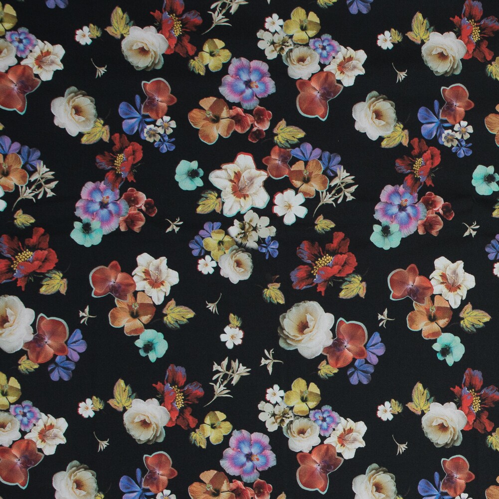 1 Yard Black Floral Pressed Flower Perfection Stretch Cotton Sateen Fabric