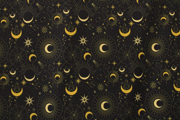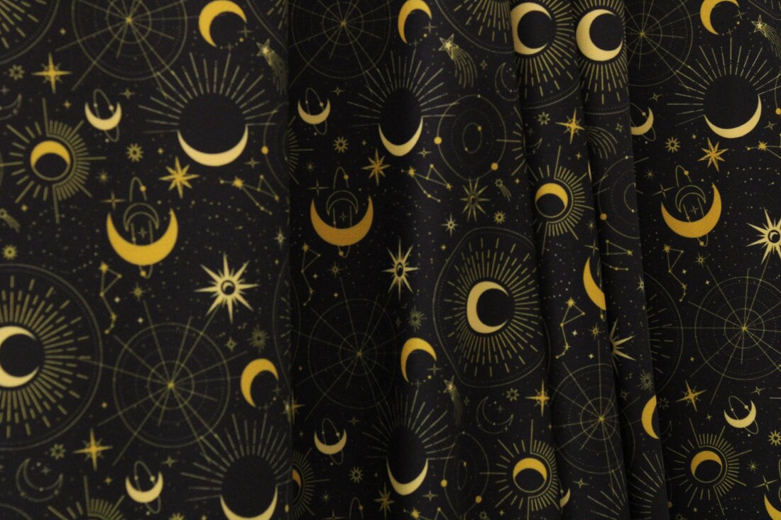 1 Yard Black Gold Midnight Sky Spandex Fabric Four Way Stretch Activewear Swimwear Costume Leggings Material 58/60 Inch Width