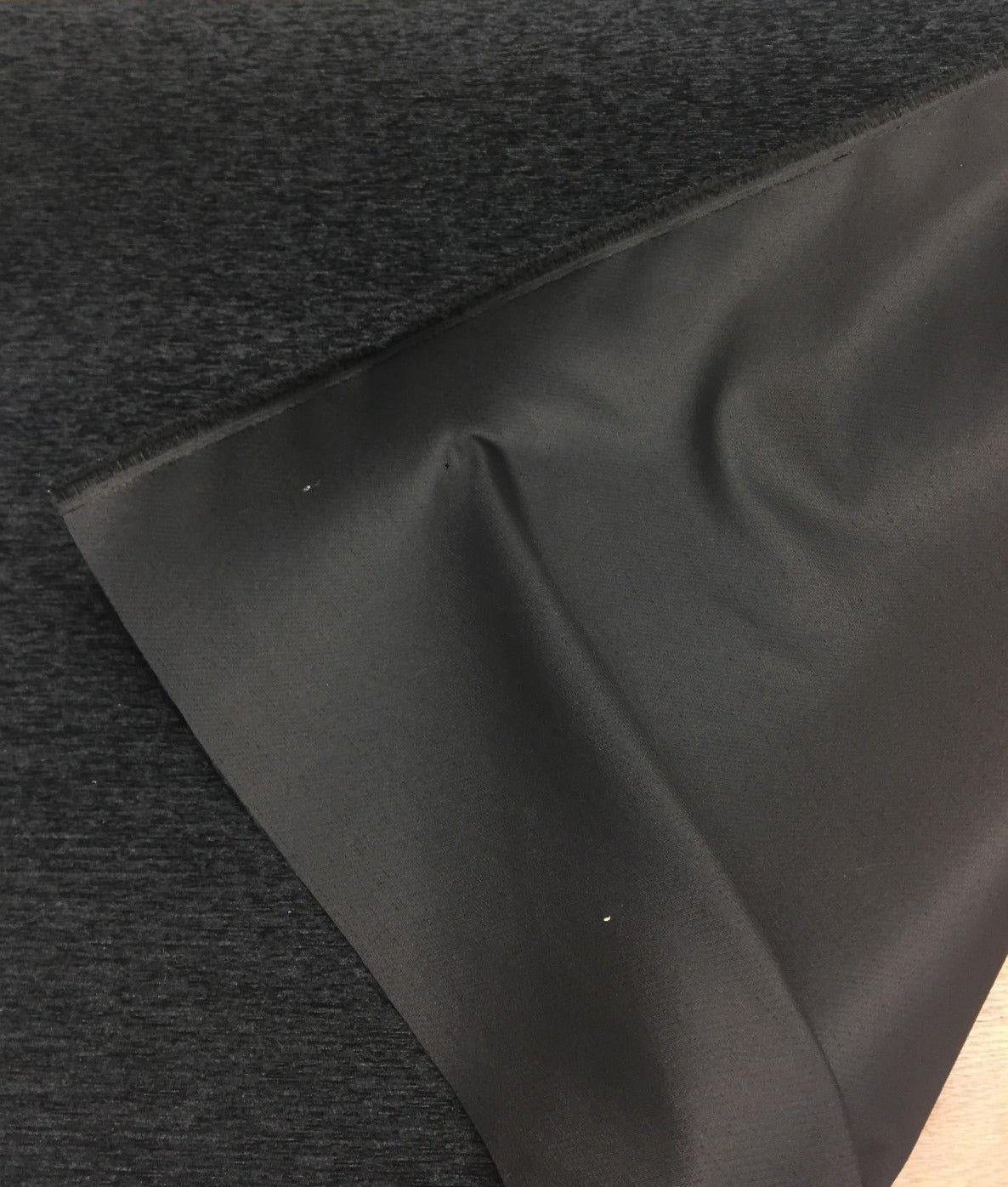 1 Yard Black Heavy Chenille Backed Upholstery Fabric 56 Inch Width