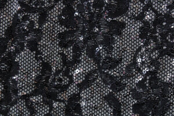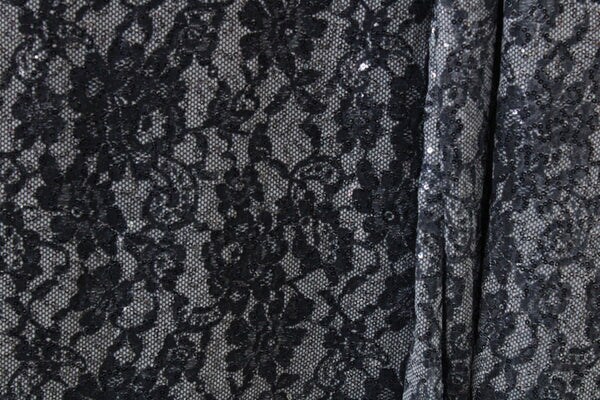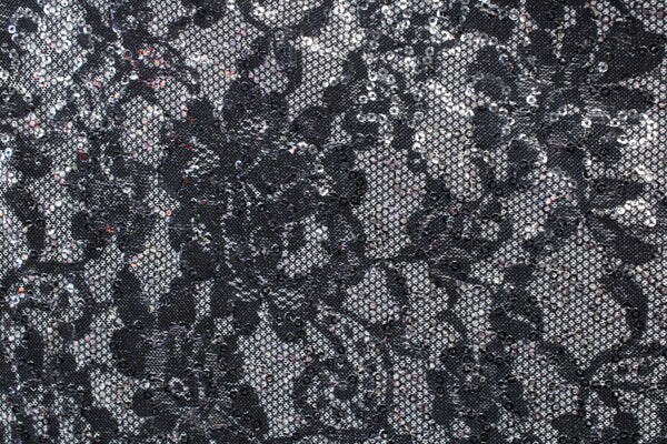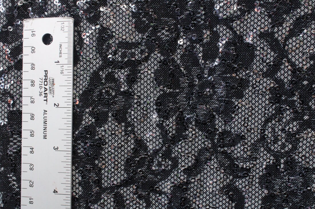1 Yard Black Lace Fabric 4-Way Stretch Sequin Mesh Printed Fabric 36" x 60"