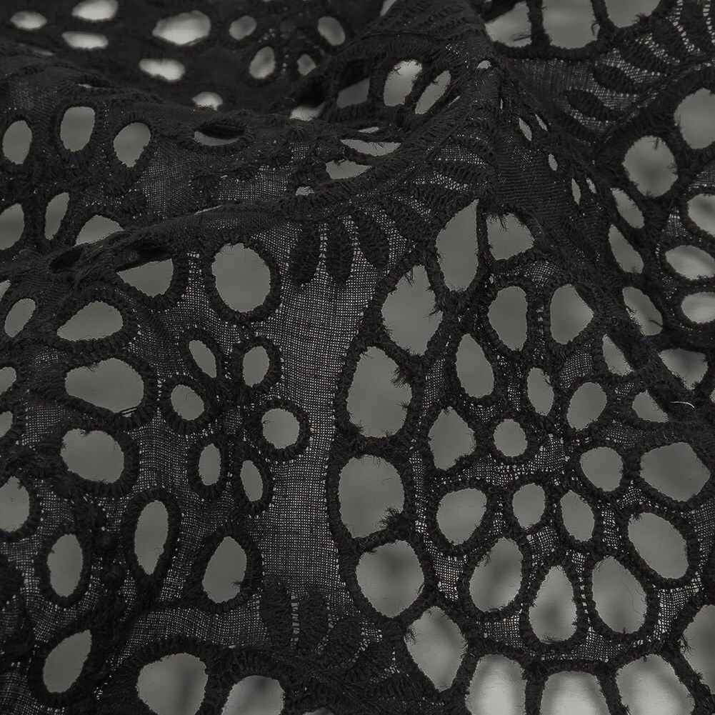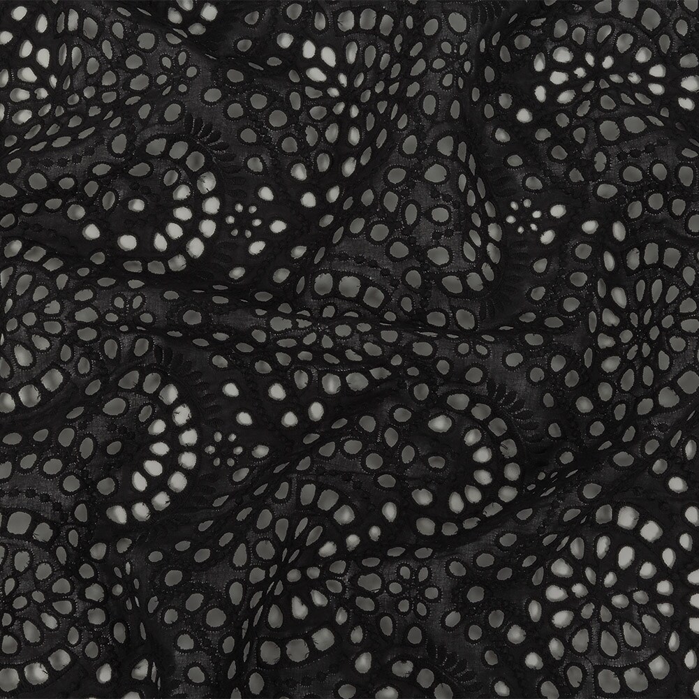 1 Yard Black Scalloped Embroidered Cotton Eyelet with Scalloped Edges