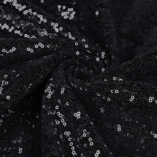 1 Yard Black Sequin Fabric with Glitter Embroidery 52" Width Polyester for DIY Tablecloth, Table Linen & Runner Projects