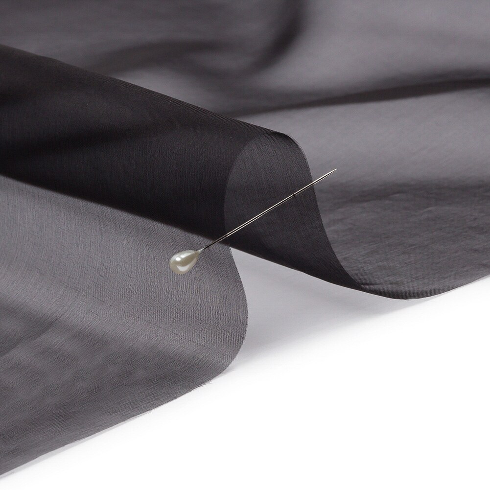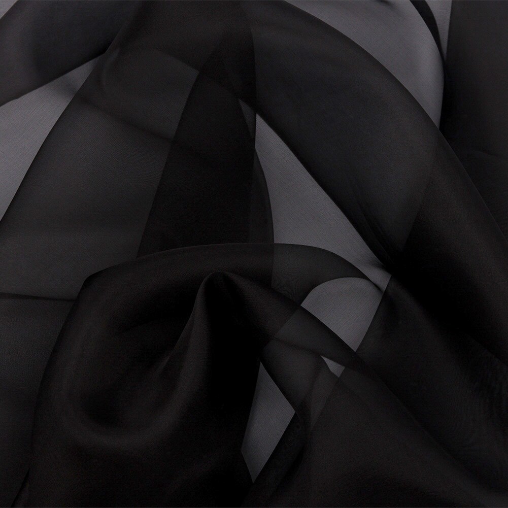 1 Yard Black Silk Organza Fabric Lightweight Sheer Material for Couture and Evening Wear 44 Inch Width