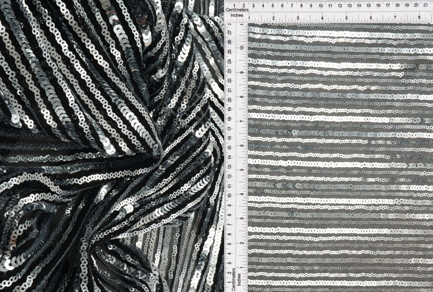 1 Yard Black & Silver Embroidered Knit Fabric Stretch Polyester Blend 50/57 Inches Wide