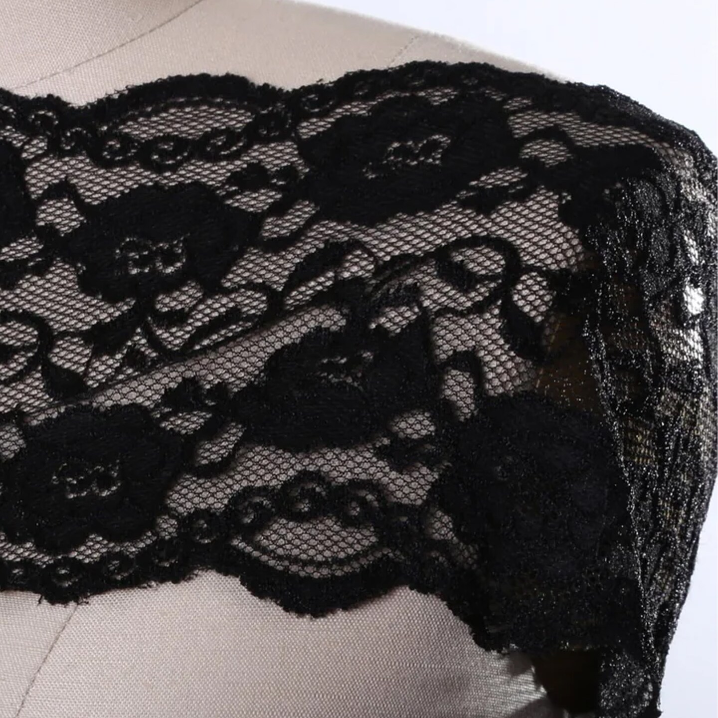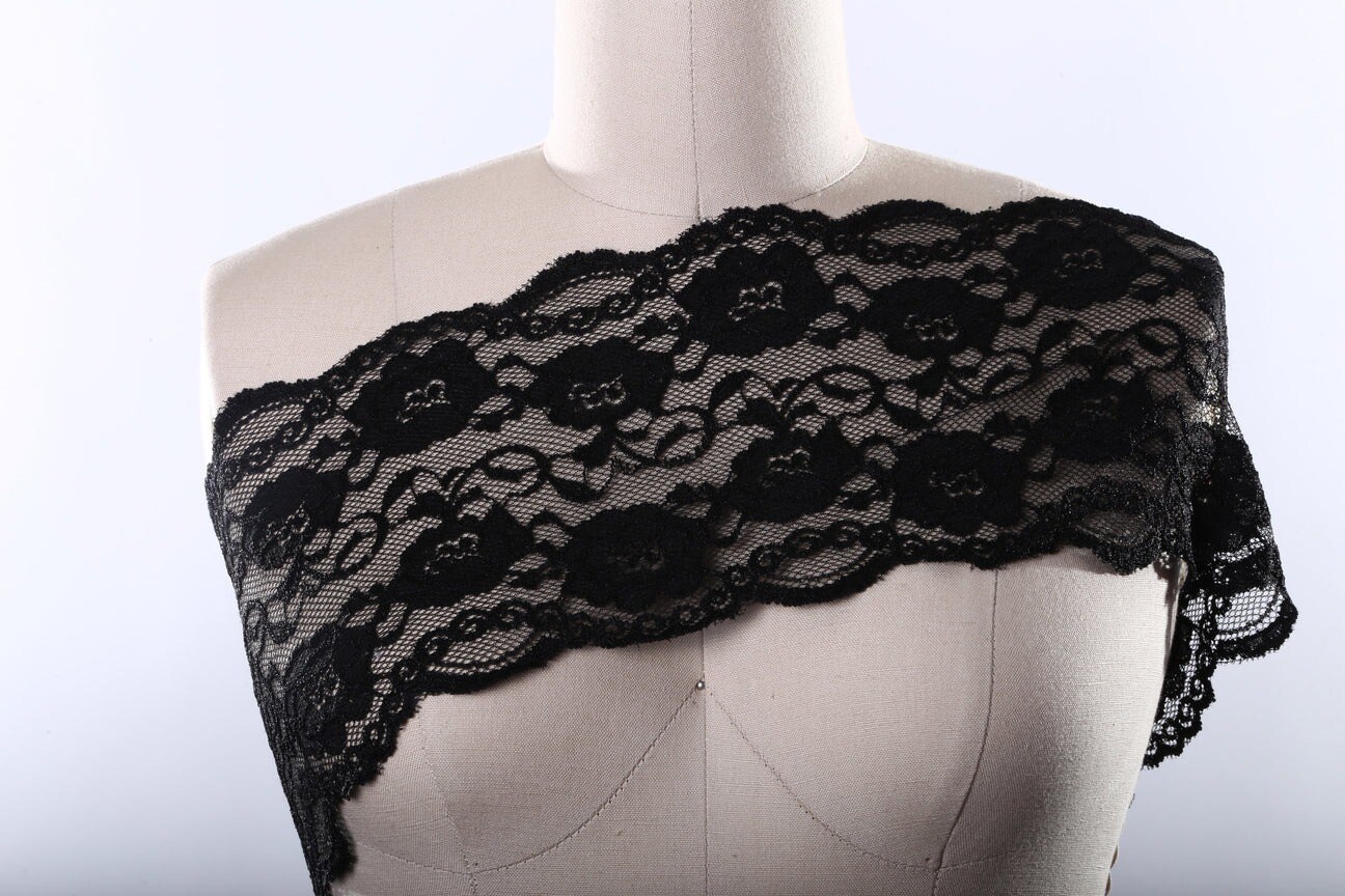 1 Yard Black Stretch Lace Flower Motif Elasticated Trim for Shirts Lingerie and Overlays 6.5 Inch Wide