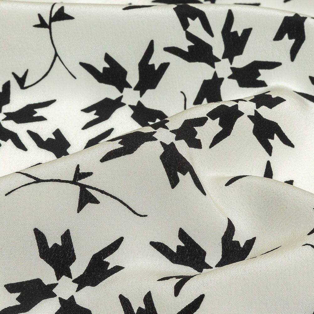 1 Yard Black & White Floral Silk Crepe de Chine 44" Wide Designer Fabric for Wrap Dresses & Scarves