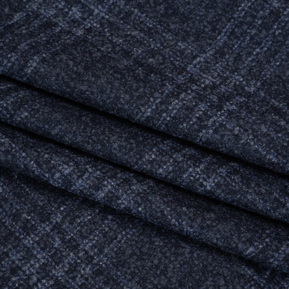 1 Yard Blue and Navy Plaid Wool Silk Cashmere Boucle Suiting Soft 60 inch Width