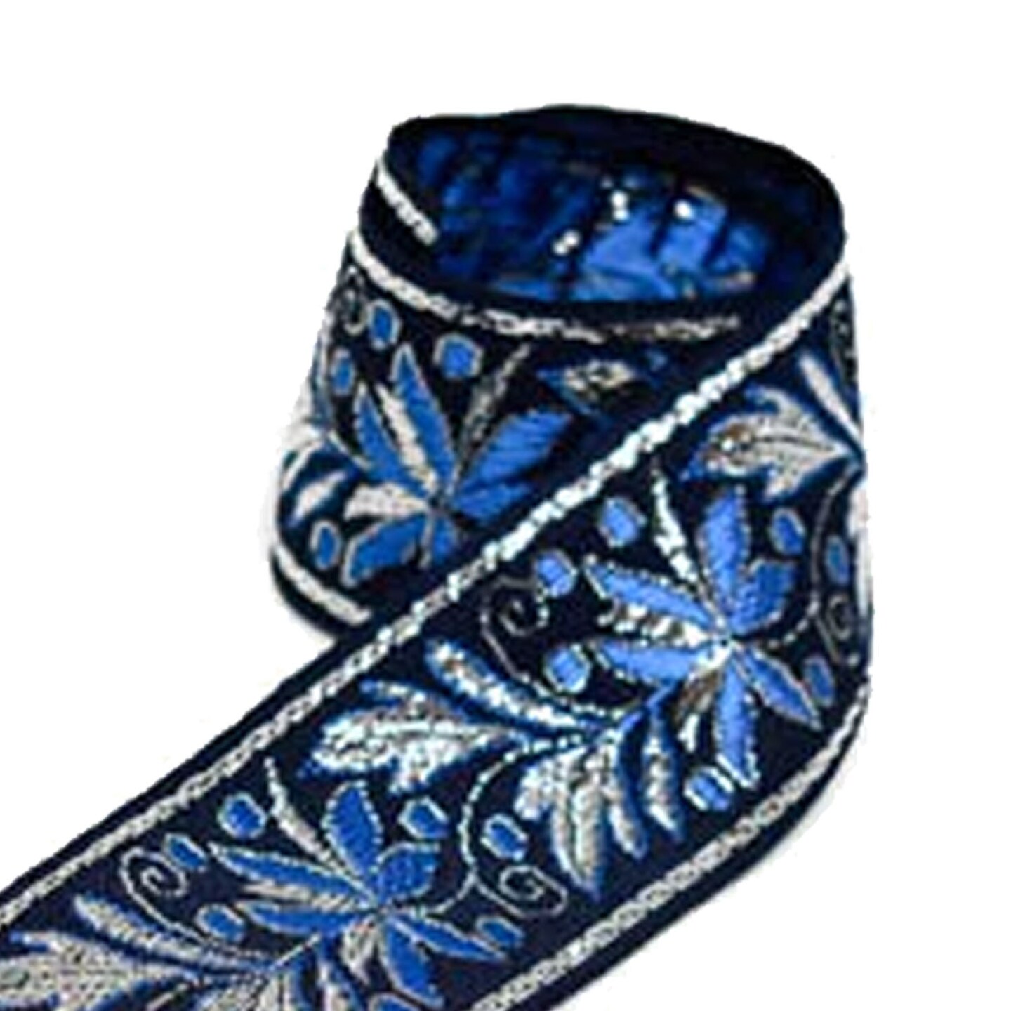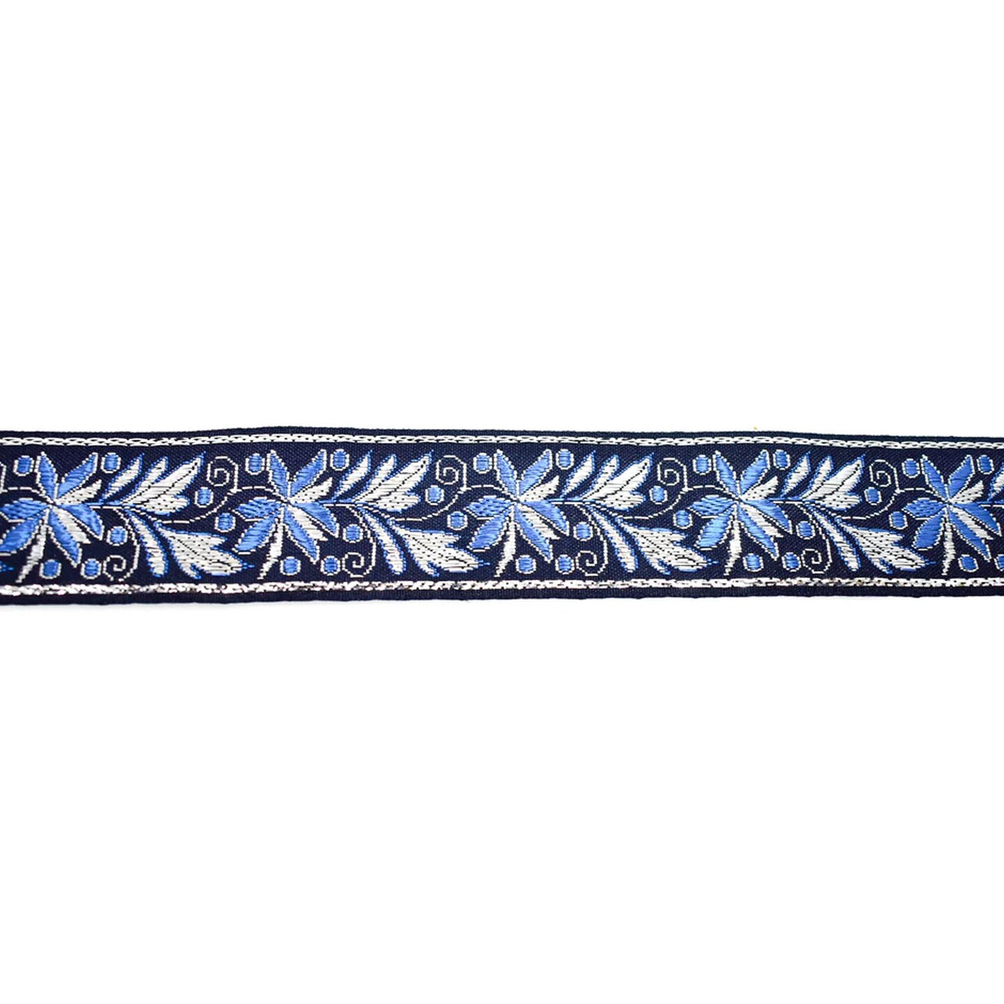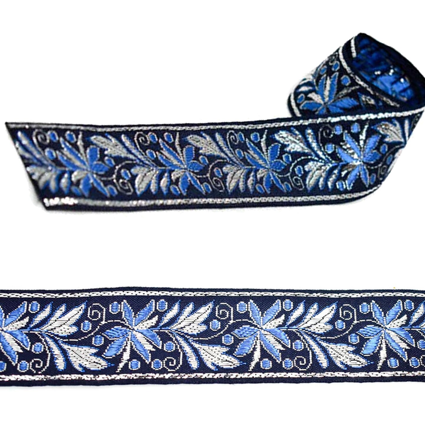 1 Yard Blue Floral Jacquard Ribbon Decorative Trim for Sewing Crafts 1.25 Inch Width