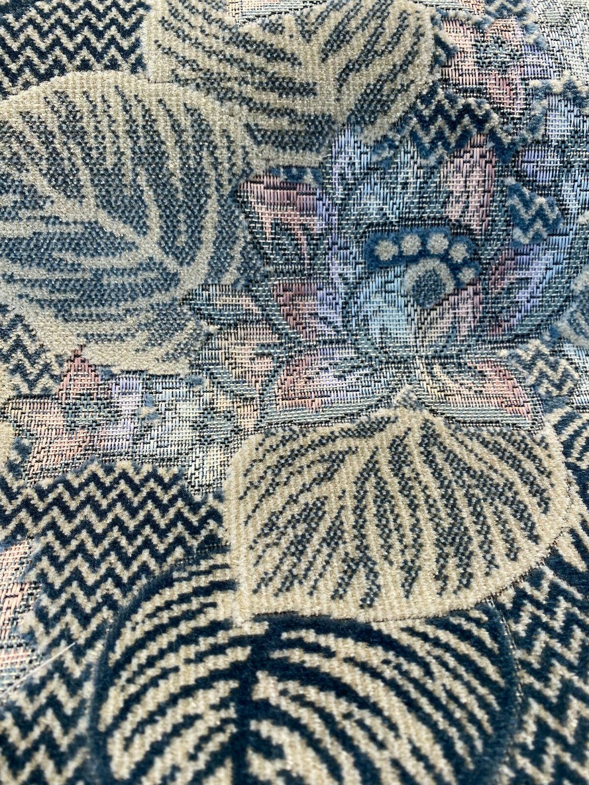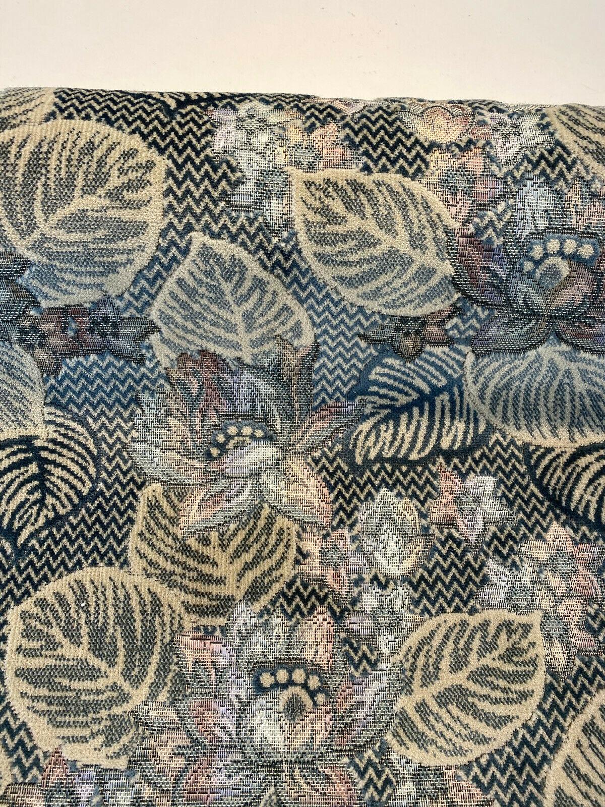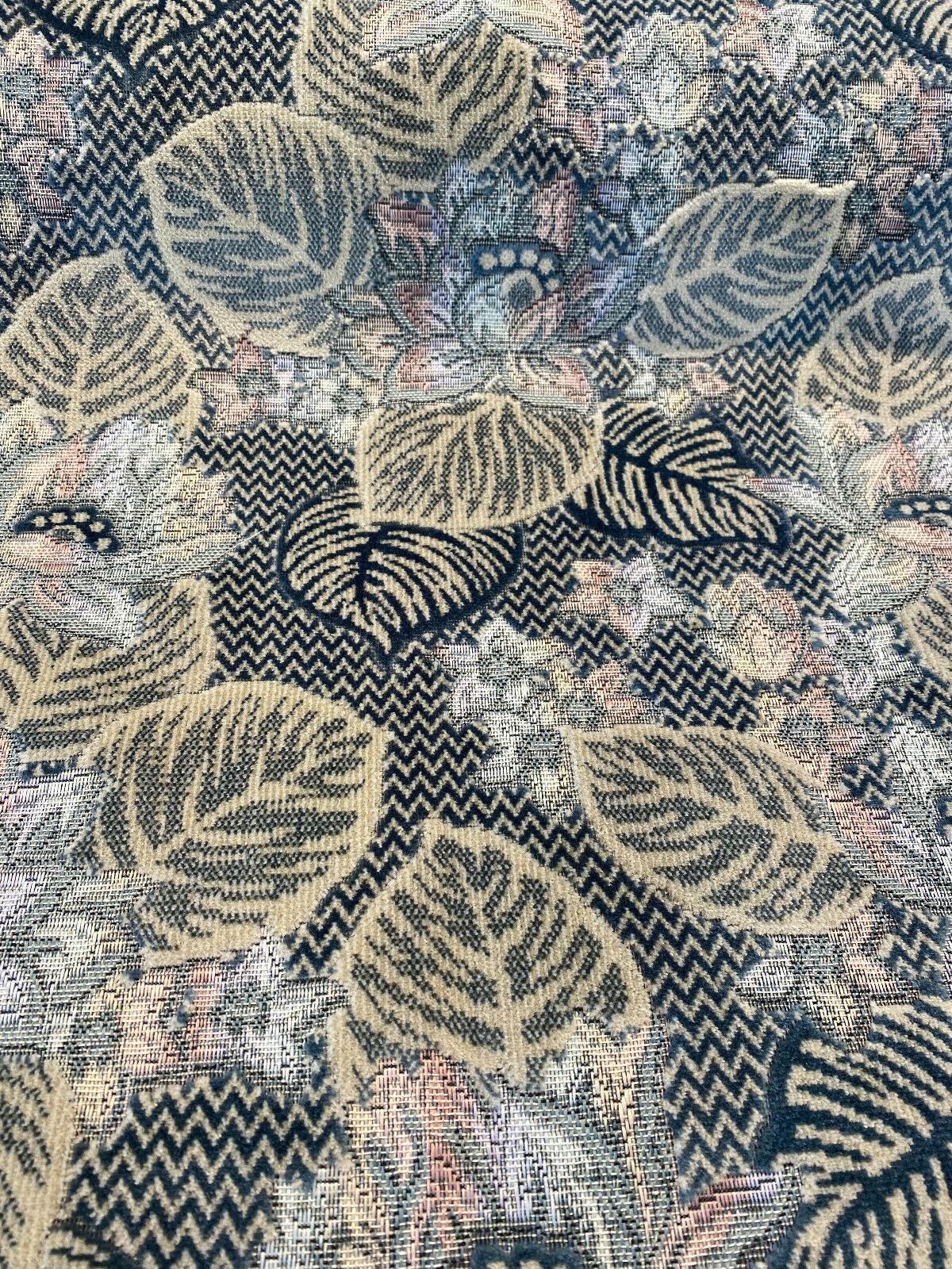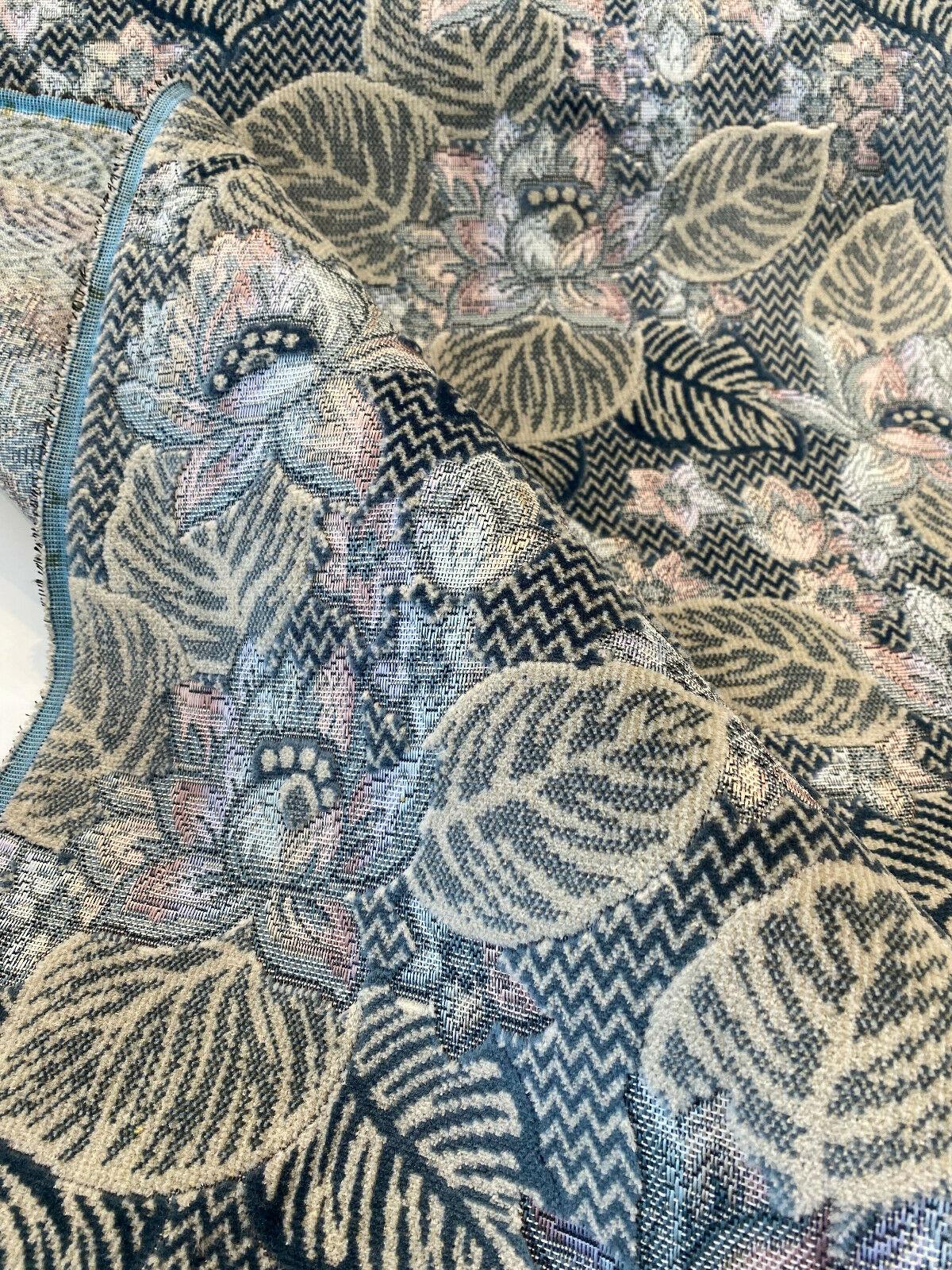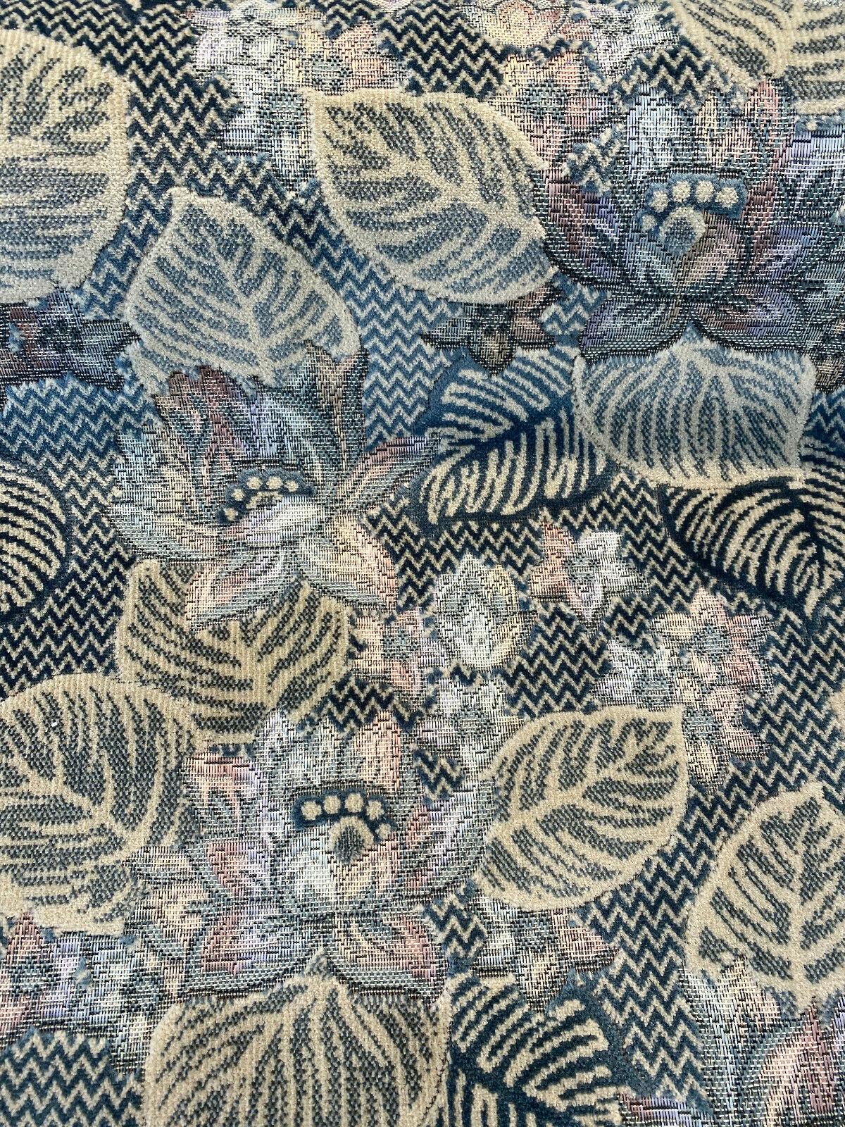 1 Yard Blue Floral Velvet Embossed Vintage Upholstery Soft Durable 68% Polyester 32% Cotton Fabric