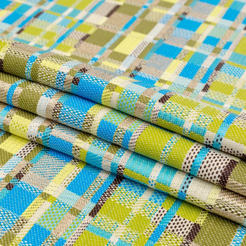1 Yard Blue Green and Metallic Silver Color-Blocked Tweed Fabric