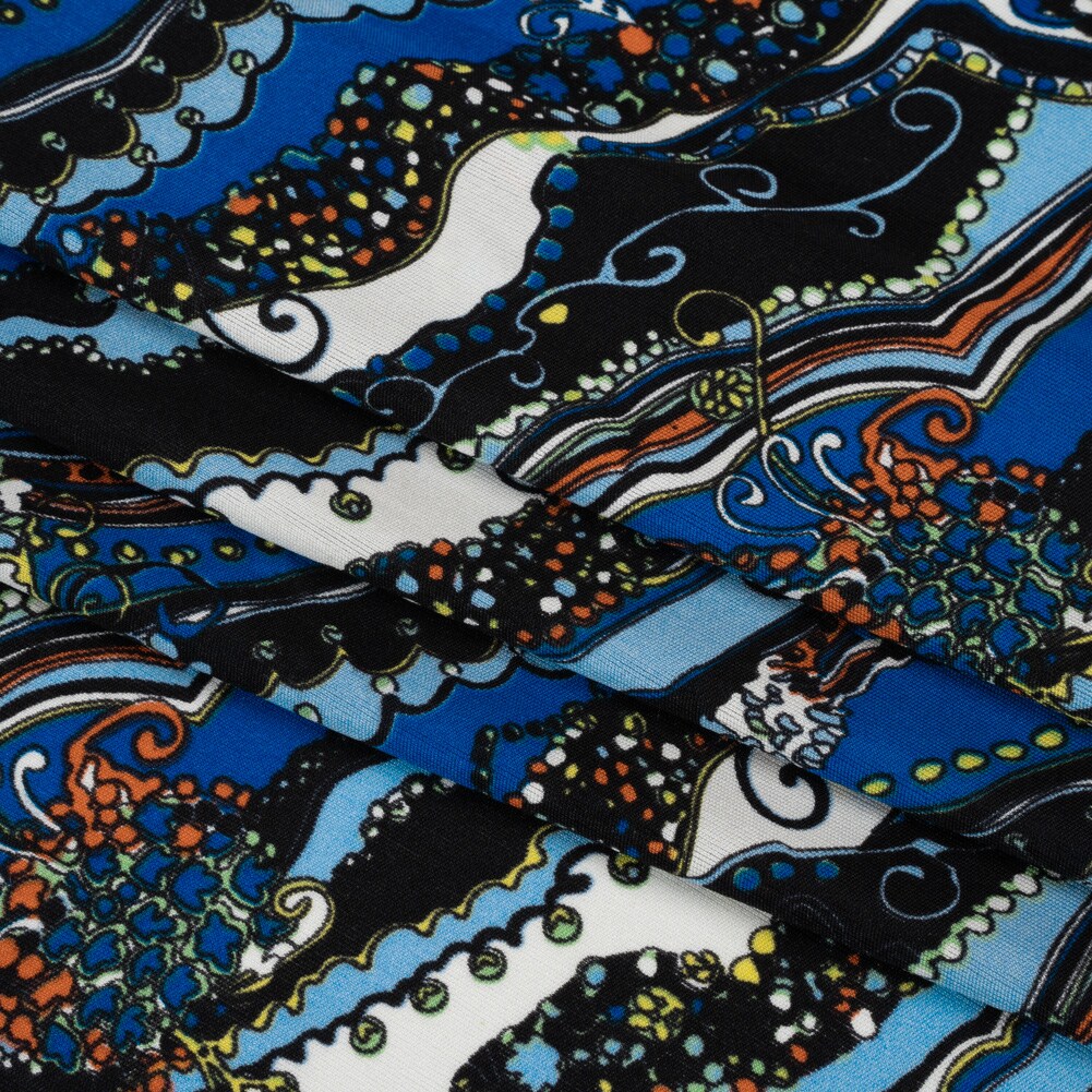 1 Yard Blue, Orange and Black Fancy Diagonal Stripes Silk Jersey 44" Wide, Abstract Stripe Fabric for Dresses & Tops