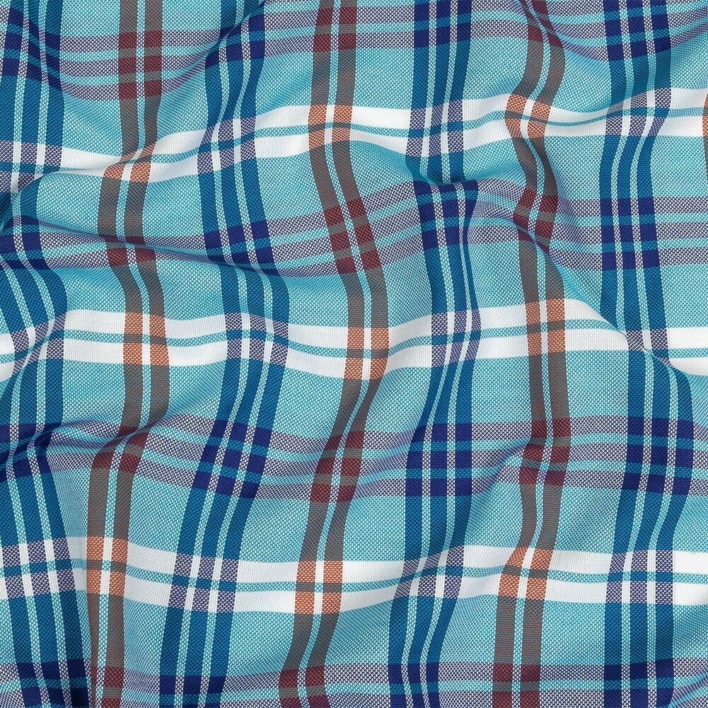 1 Yard Blue Orange White Plaid Cotton Polyester Dobby Fabric