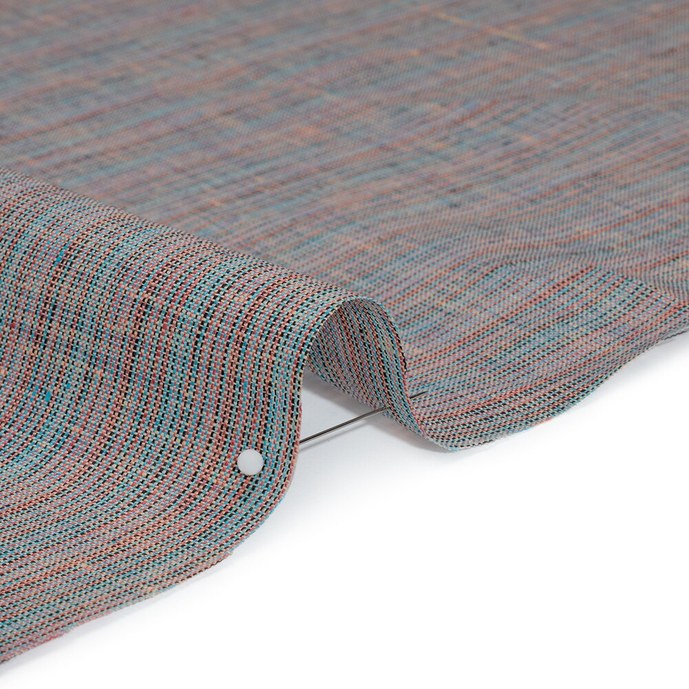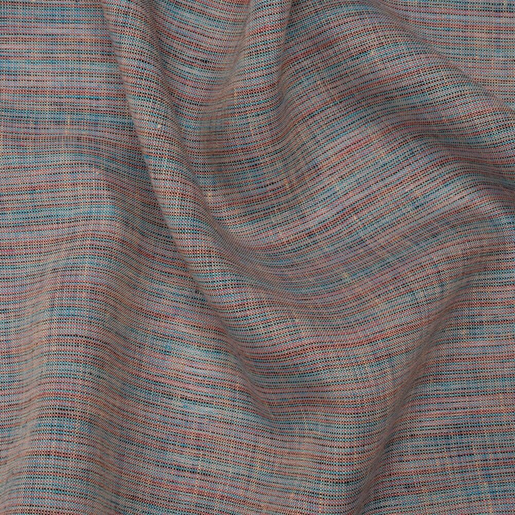 1 Yard Blue Pink and Black Striped Lightweight Linen Woven