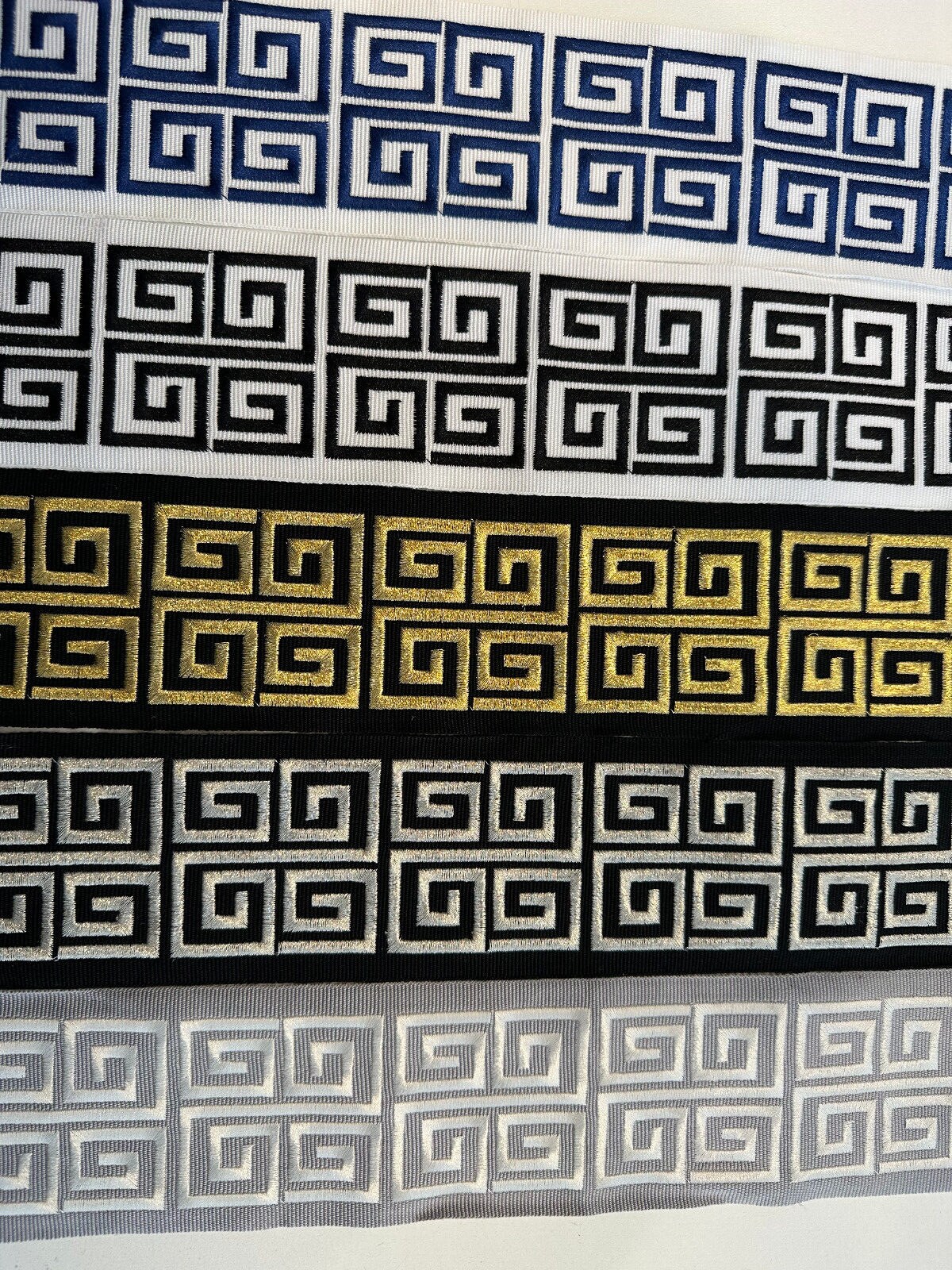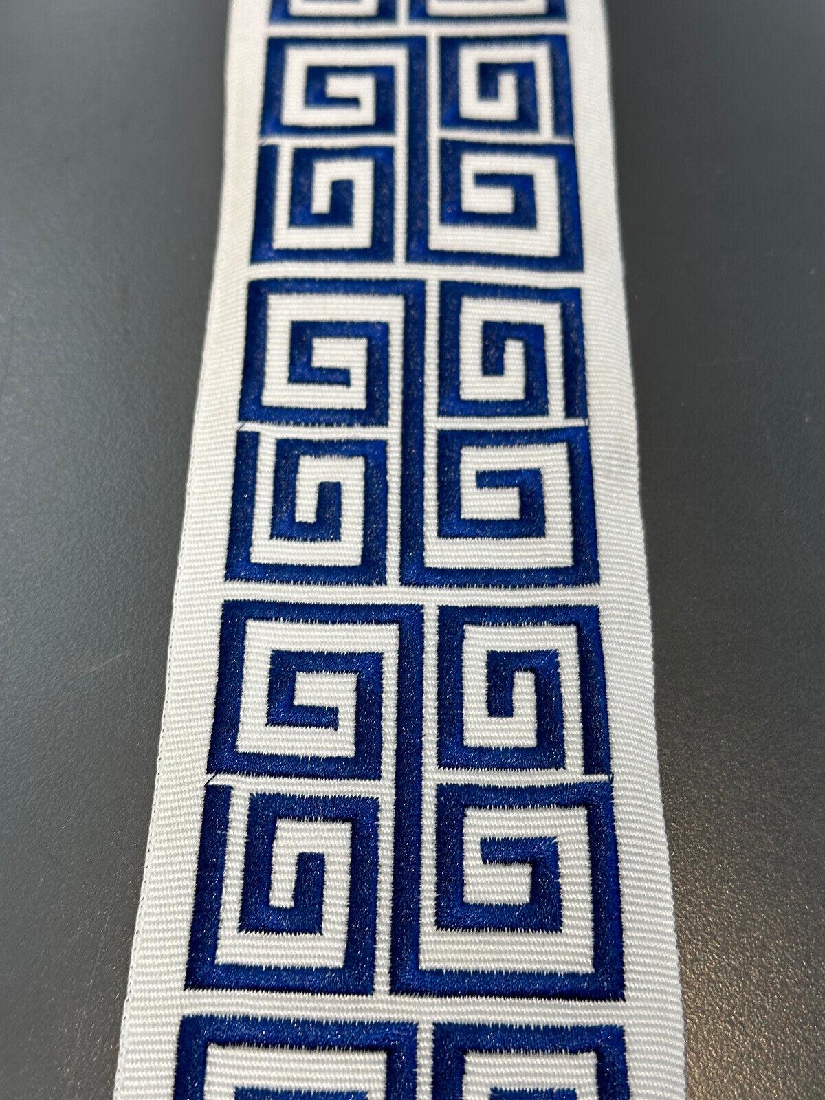 1 Yard Blue White Double Greek Key Embroidery Trim Tape for Upholstery and Decor 3 Inch Wide