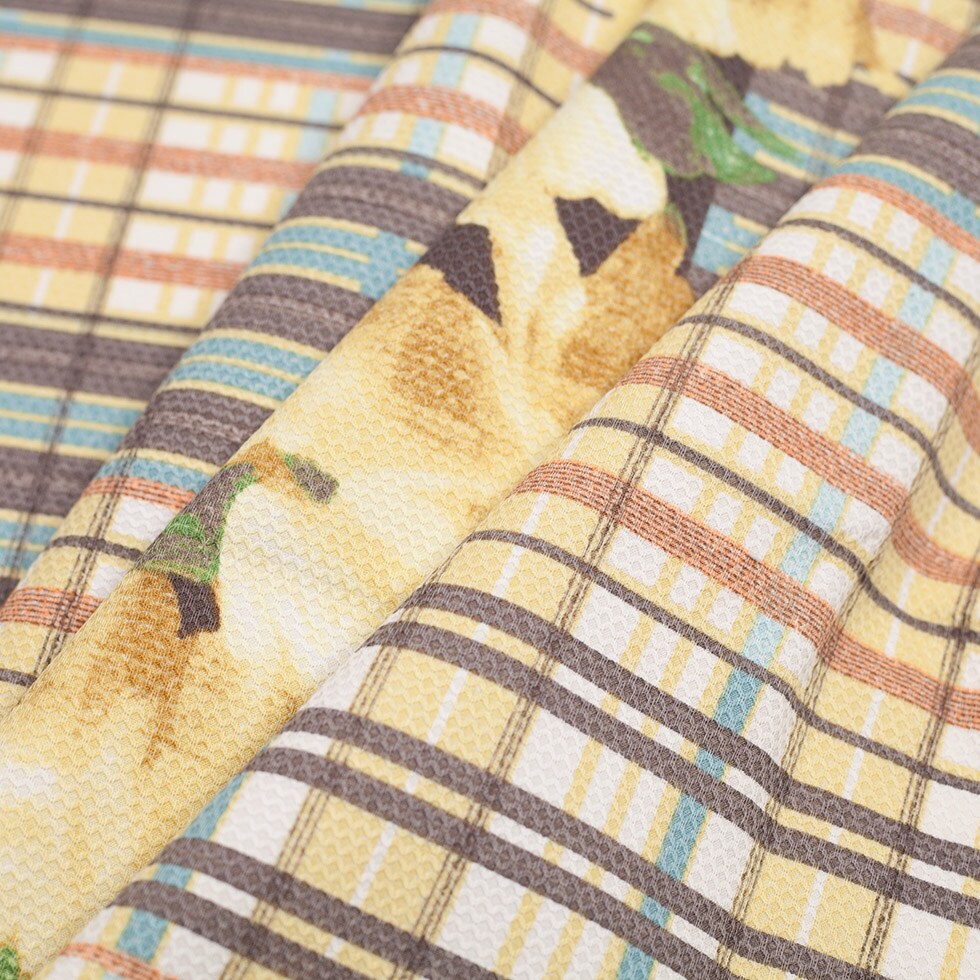 1 Yard Blue Yellow Plaid Cotton Pique With Floral Detail Deadstock Fabric
