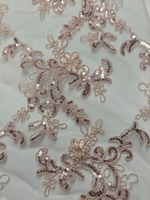 1 Yard Blush Pink Corded Sequin Embroidered Mesh Lace Fabric with Scallop Edge 54” Wide