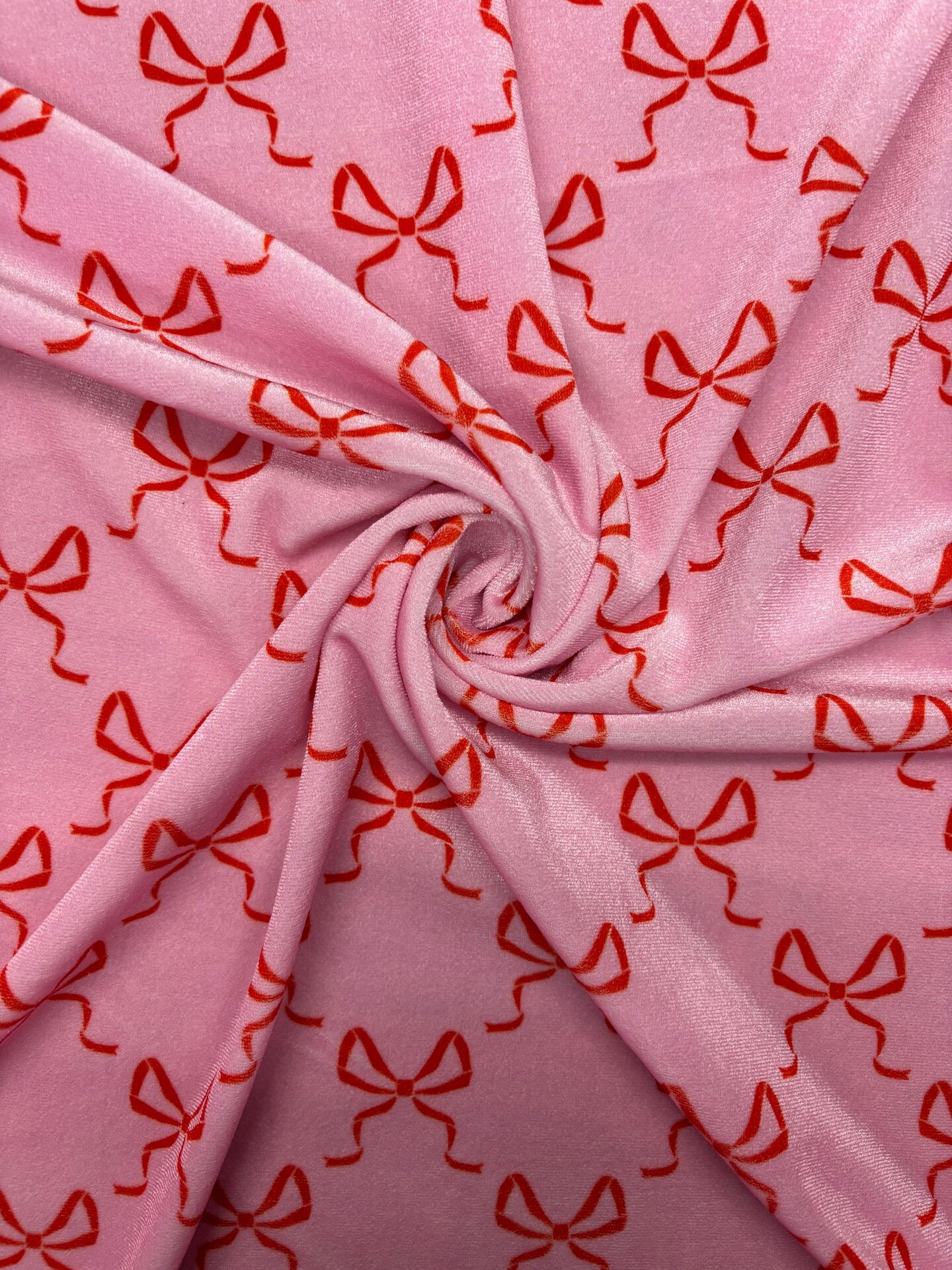1 Yard Bow Print Stretch Velvet Fabric for dance wear, leggings, active wear, and costumes
