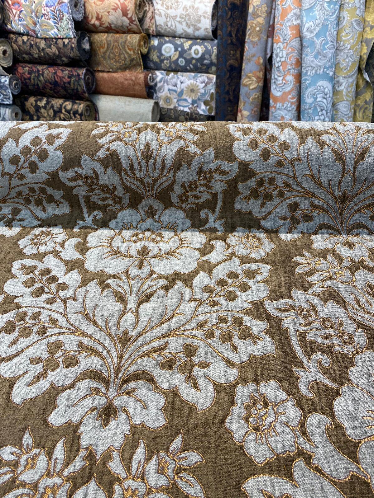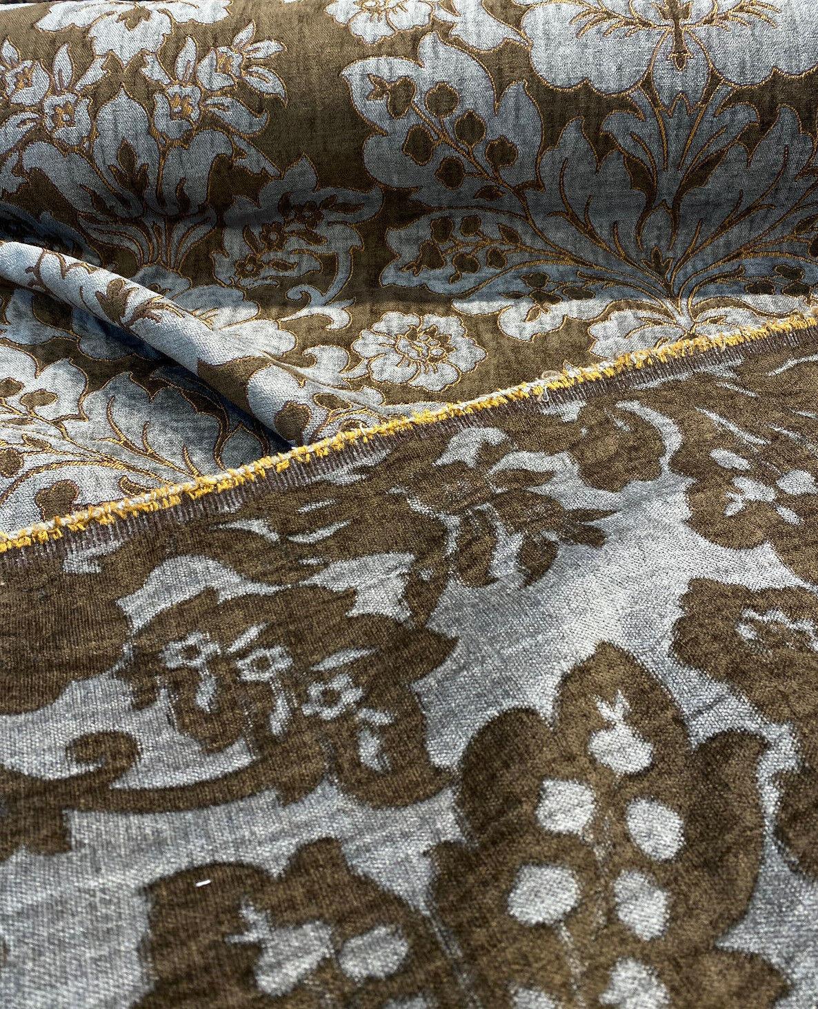 1 Yard Bronze Floral Damask Chenille Upholstery Fabric Soft Durable 75% Polyester 25% Rayon