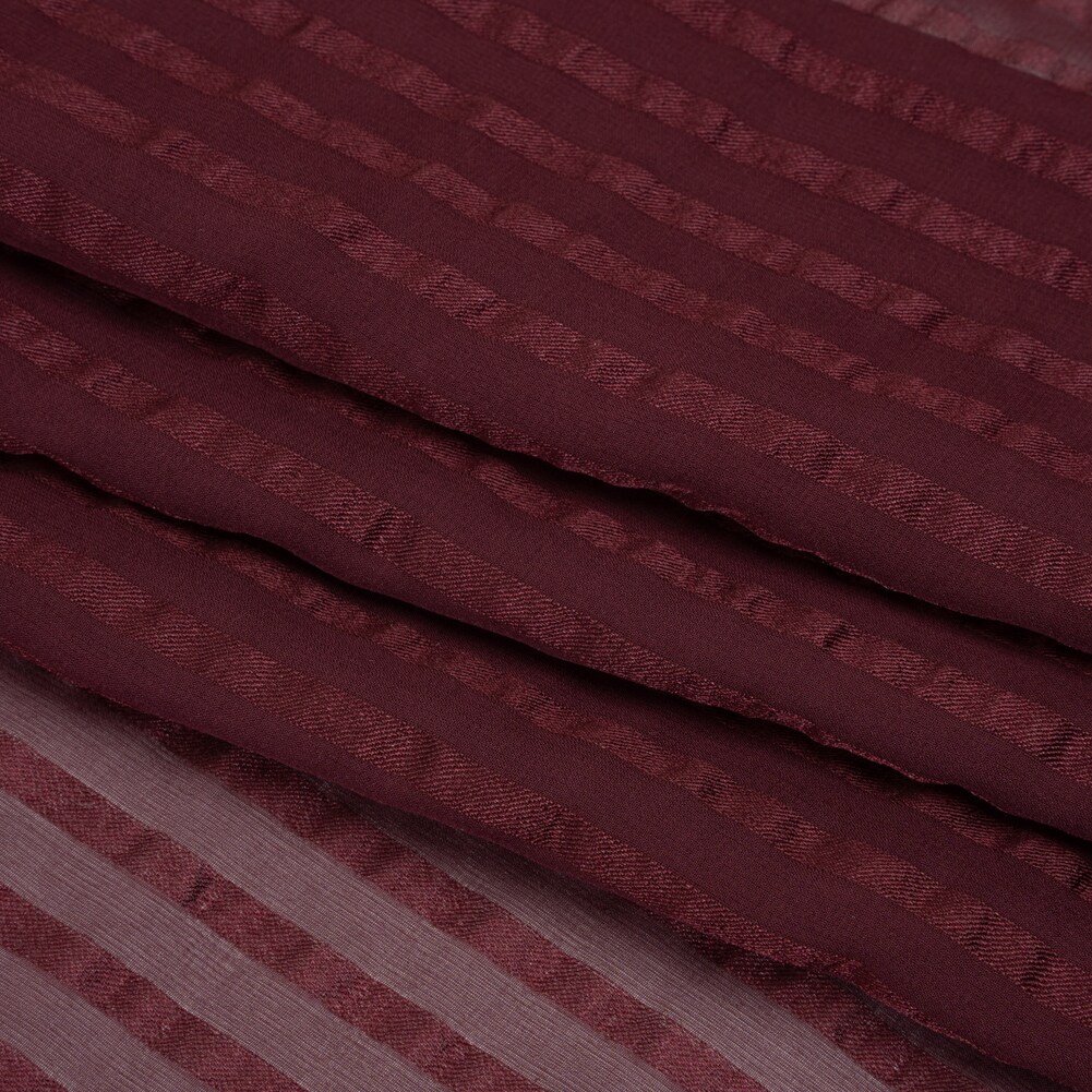 1 Yard Burgundy Twill Burnout Striped Silk Georgette Fabric for Elegant Apparel 53 Inch Width