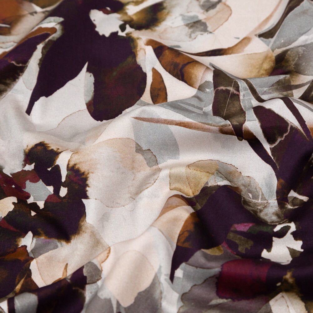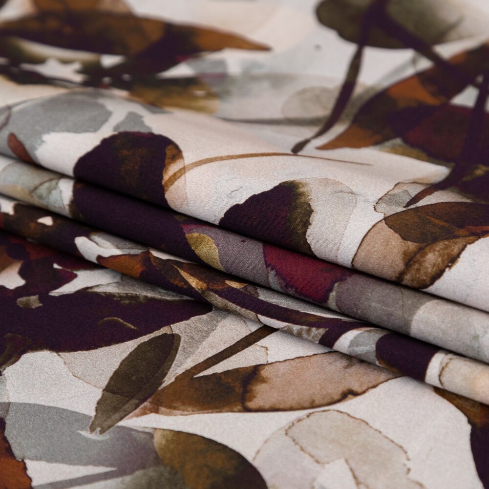 1 Yard Burgundy & White Floral Stretch Cotton Sateen Fabric A Drop of Golden Sun 55 inch Width
