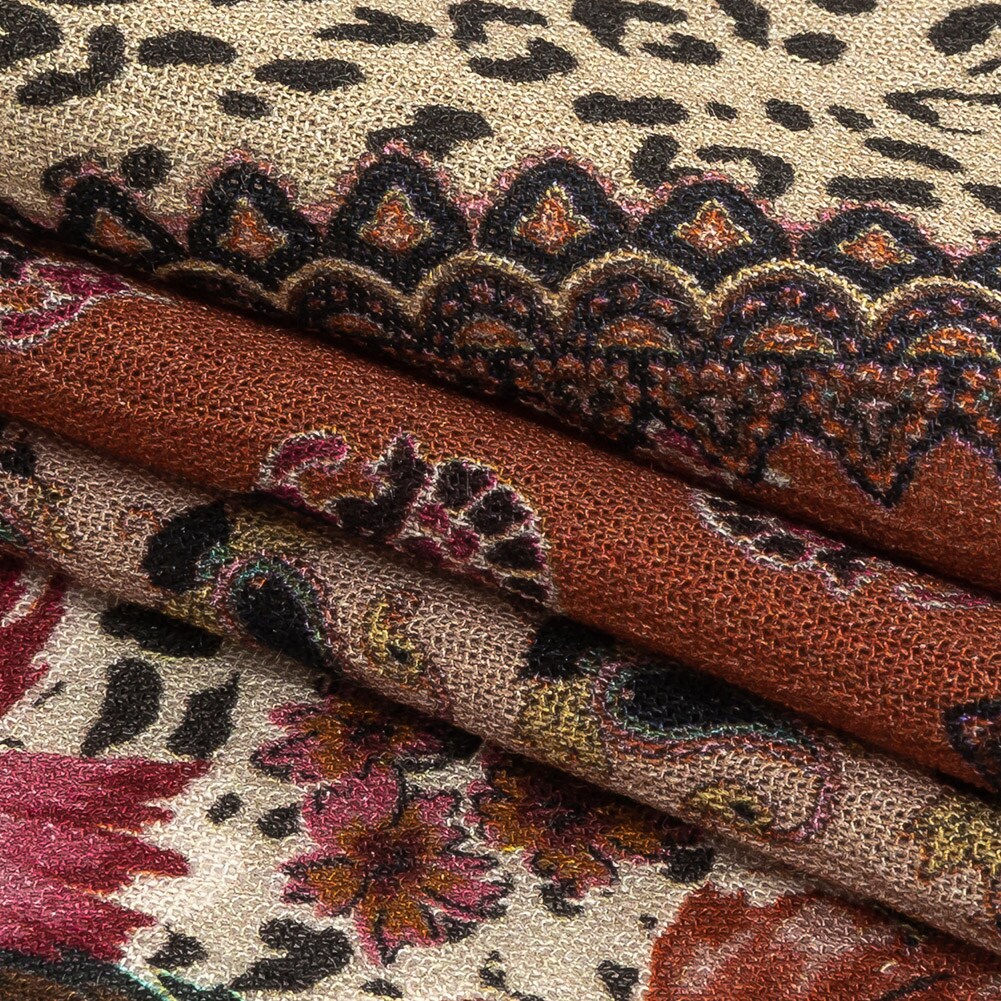 1 Yard Burnt Orange Animal Floral Patchwork Gauzy Wrinkled Rayon Woven Fabric 53 inch Width