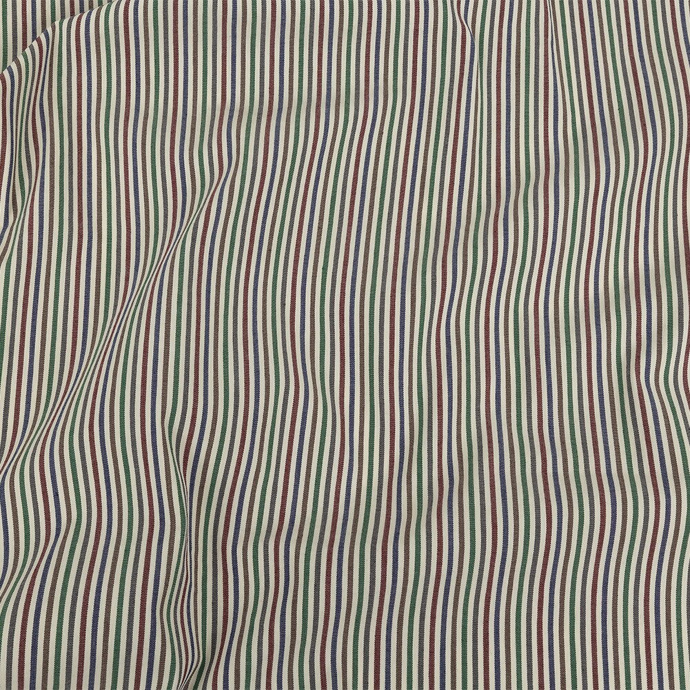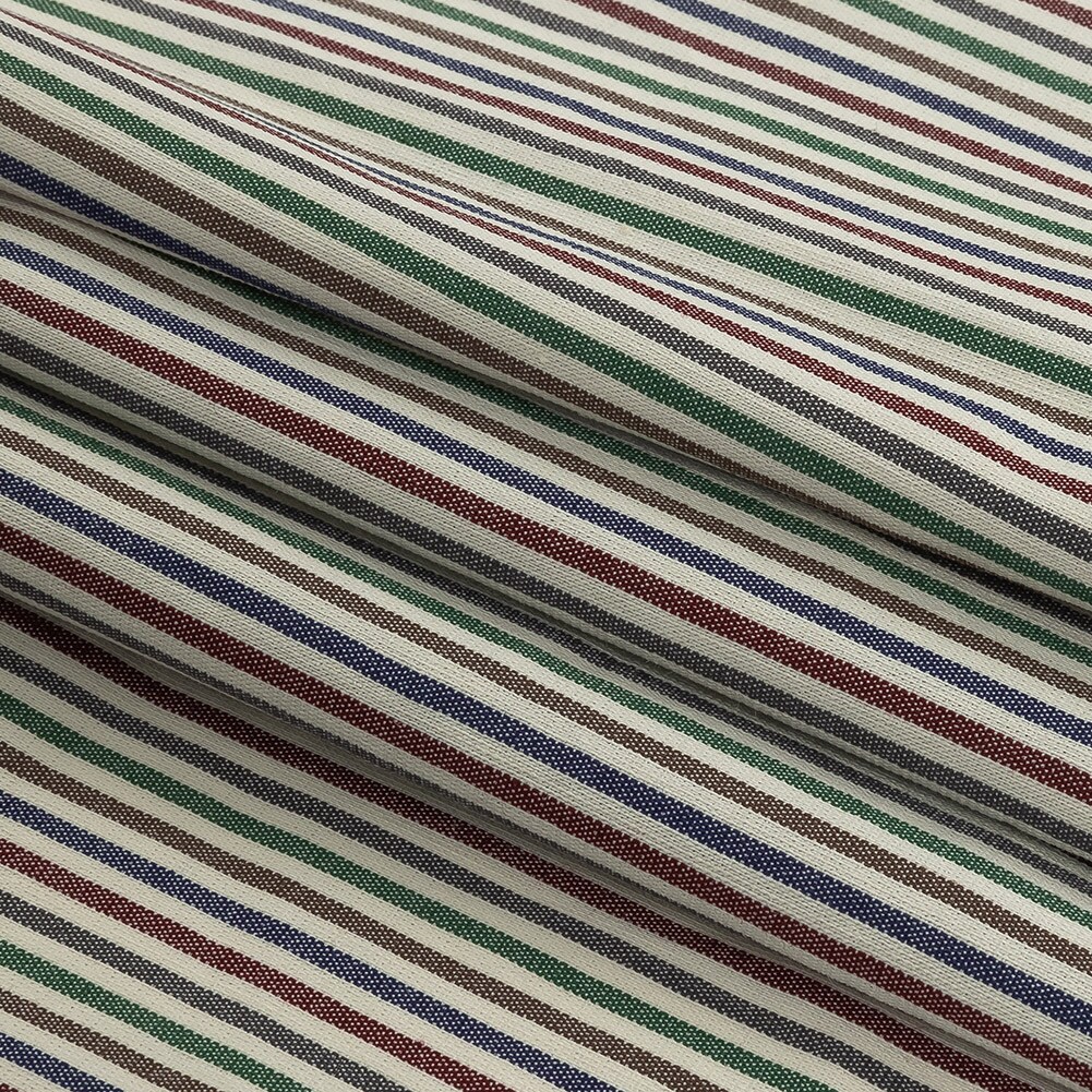 1 Yard Burnt Russet Duck Green Crown Blue Striped Stretch Cotton Woven Fabric Deadstock Material