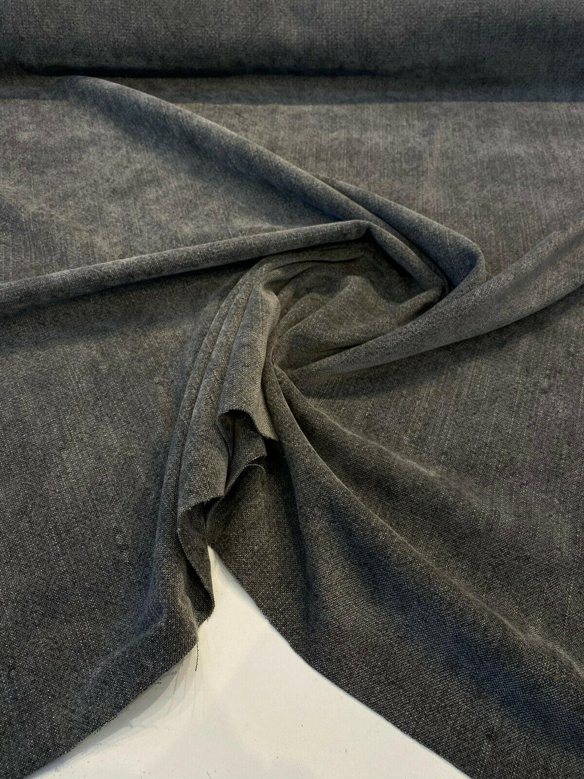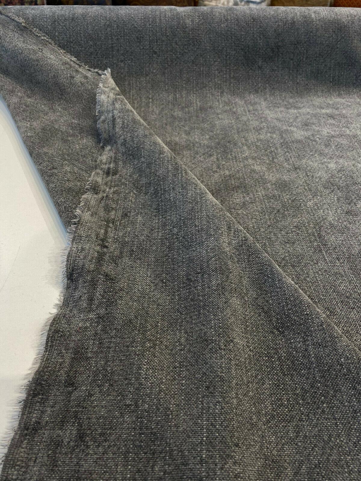 1 Yard Calvin Linen Smokey Dark Gray Fabric, Italian Upholstery Drapery 56 Wide