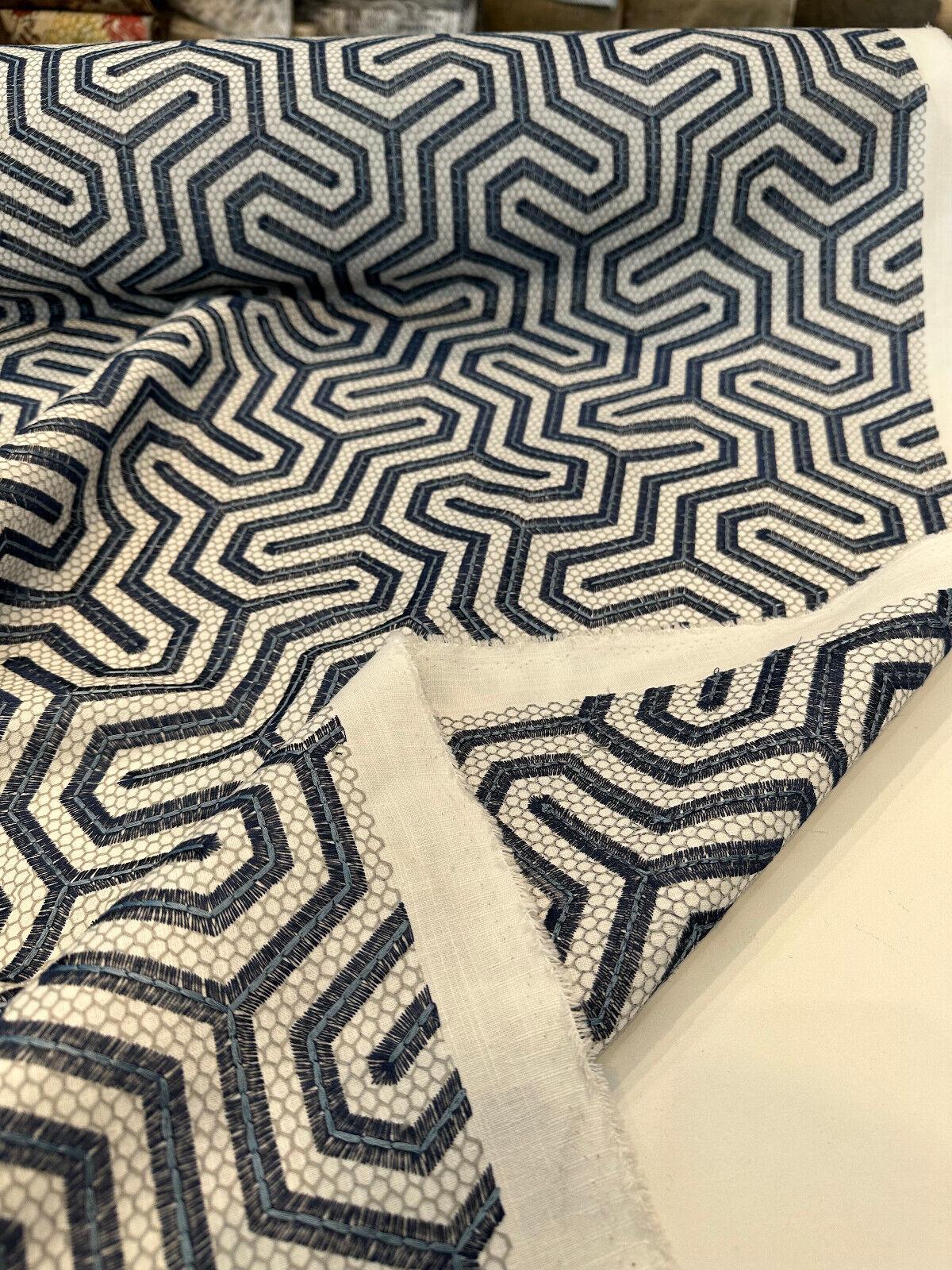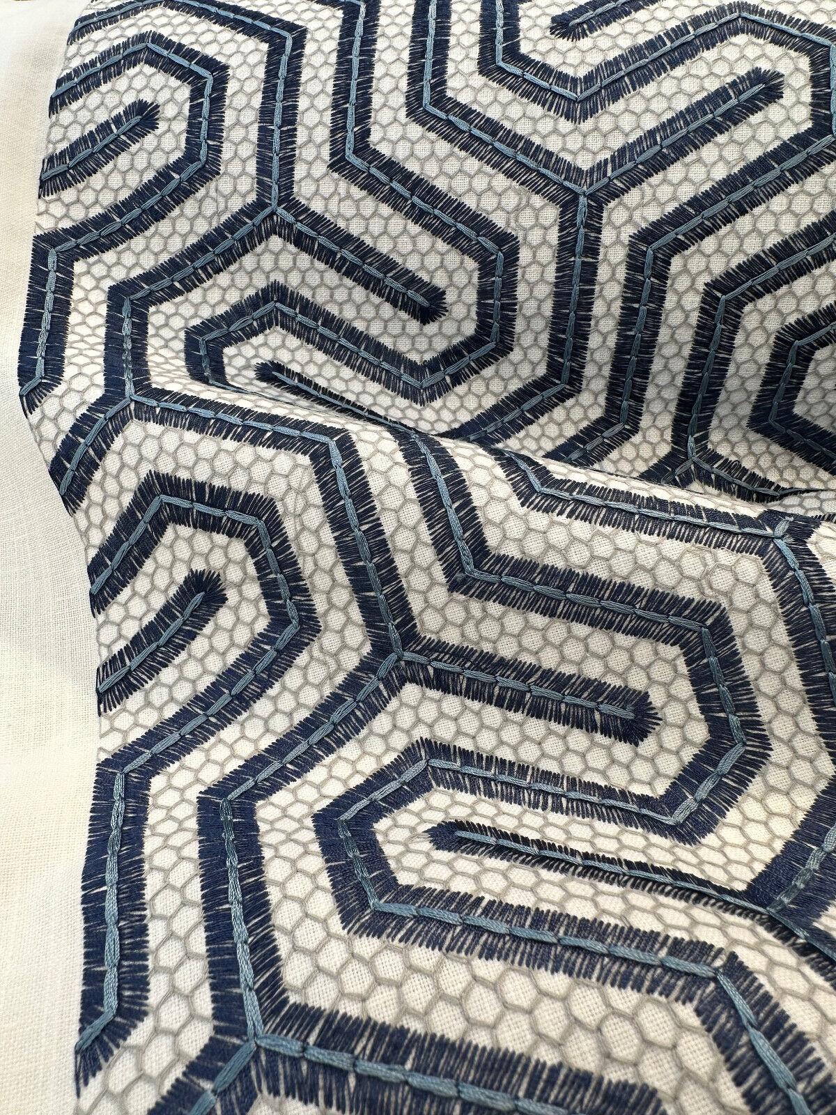 1 Yard Cayden Emb Indigo Blue Drapery Upholstery Fabric 56 Inches Wide
