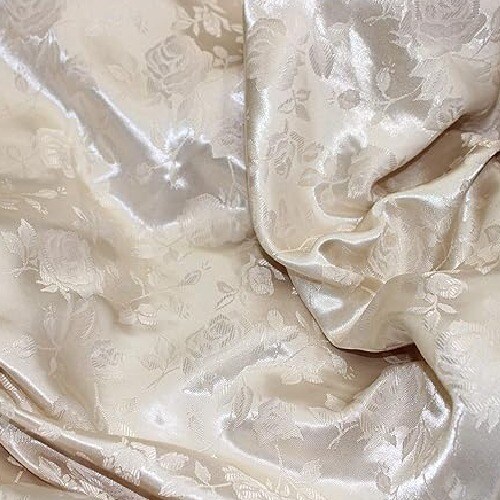 1 Yard Champagne Rose Floral Jacquard Satin 60/59″ Width 100 Percent Polyester