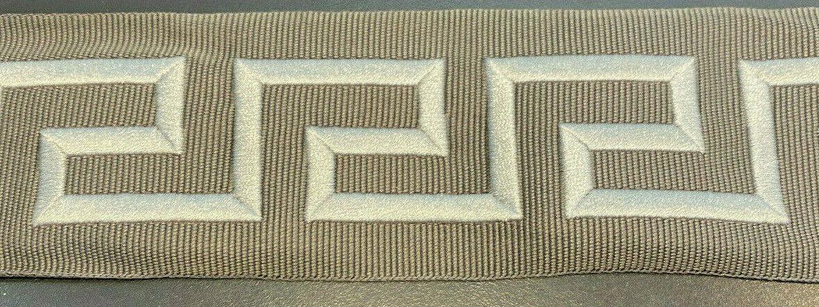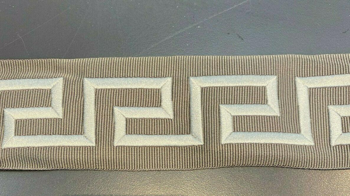 1 Yard Charcoal Silver Greek Key Embroidery Trim Tape for Upholstery and Drapery 2.1 Inch Wide